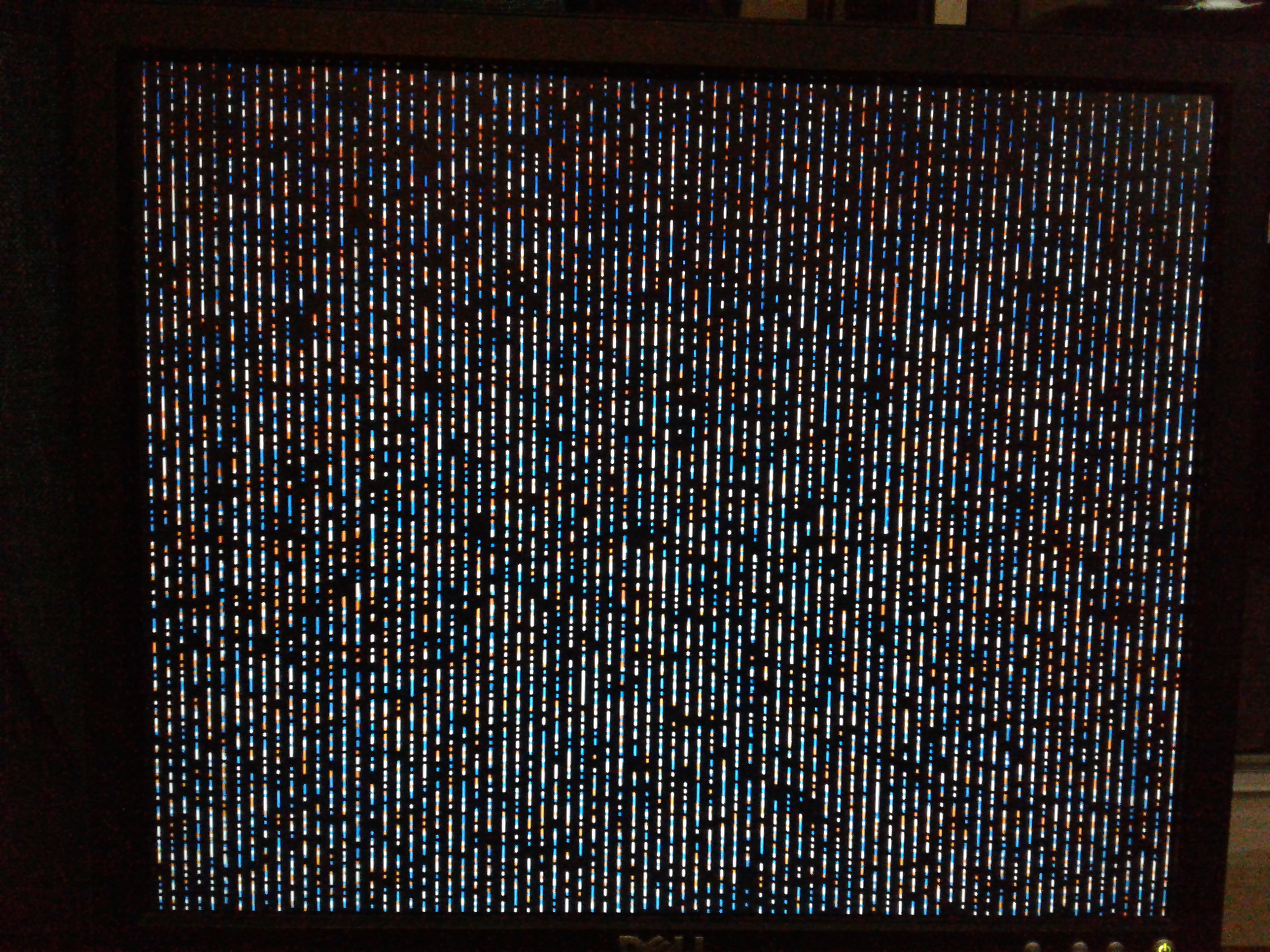 The color pictures are from when I take the CPU out. The tiny white pixels is from when I put the CPU back in. The simulator screenshot is what is expected with the CPU put in. Also attached are schematics.