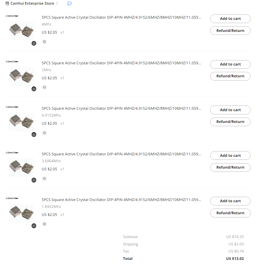 About 'can oscillators'... I've purchased a few common values from this AliExpress vendor in the recent past with good results.