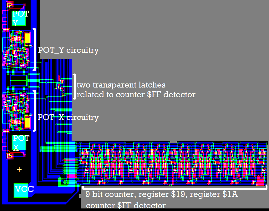 and one bit of the POT_X register west of the pad.