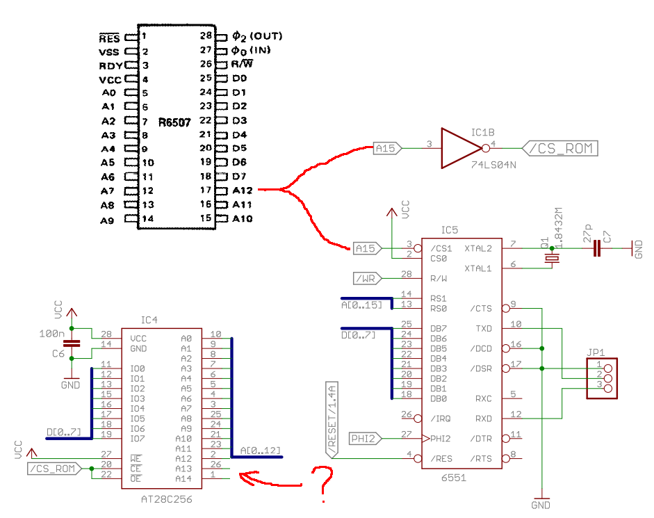 since the 6507 only has addressing up to A12, I connected this port to 6551 as if it were the A15 of 6502.