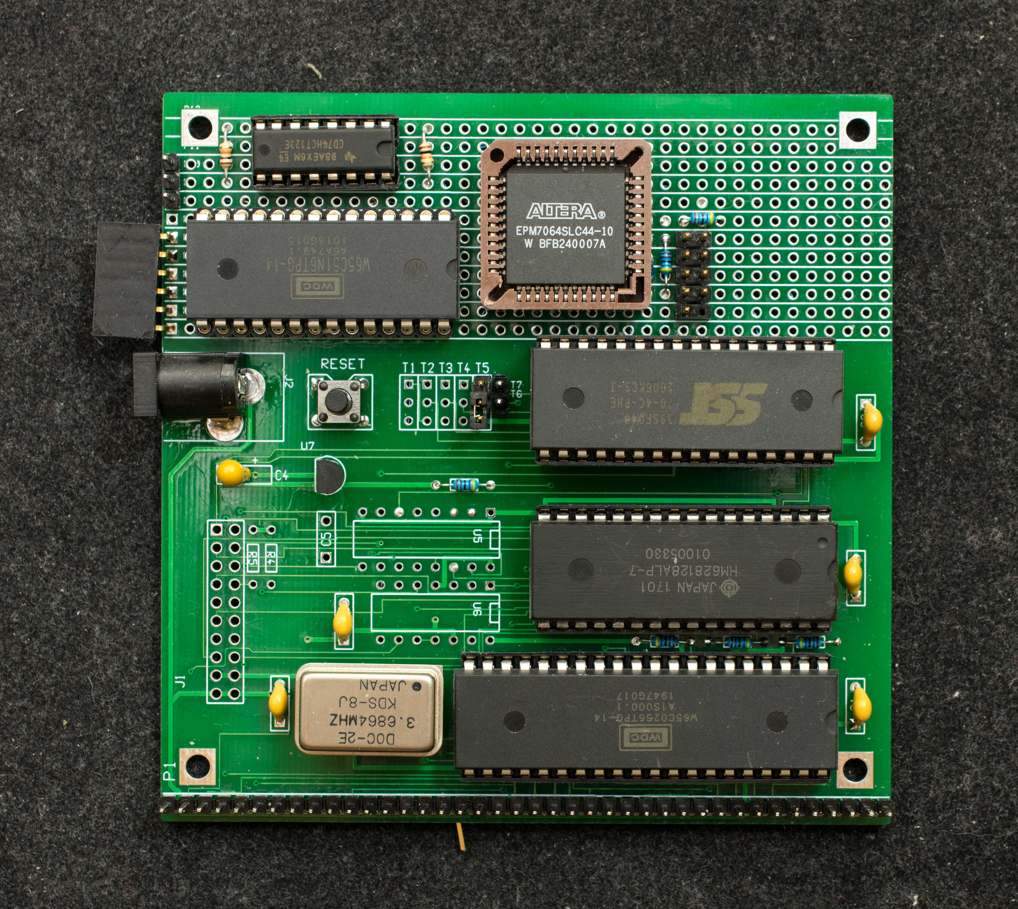 I received four W65C51 ACIA last week and built up a board to explore ROMless bootstrapping with ACIA. Because of my inexperience with W65C51 and plan to use features not well documented in datasheet, I use a CPLD as glue logic instead of discrete TTL logic. The CPLD allows me to change design easily, often without changing any wiring. Another baby step is configuring the board as a normal computer booting out of EPROM so I can checkout ACIA a little bit at a time.
