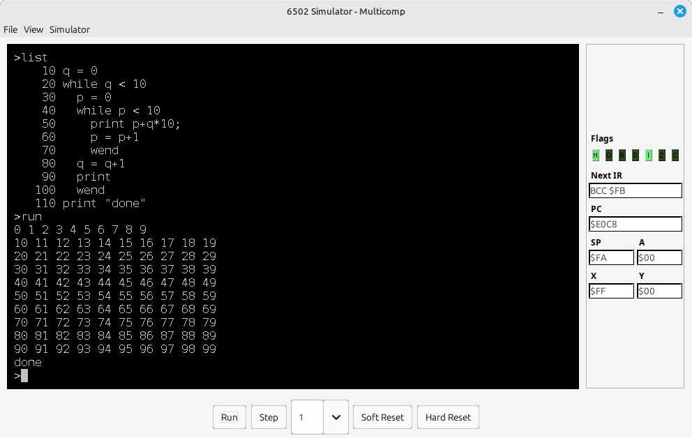 Yeah, that's the problem: when does it stop being Basic? On the other hand, it's _my_ interpretation, and certainly the original Tiny Basics from the seventies were not terribly standardised. As far as I know, everything can be done with a single structure: while. If and For make things easier, but I'm firmly with Dijkstra on goto considered harmful. In spite of the fact that (obviously) assembly us full of 'em... most of my bugs have been issues where I have not jumped to the correct location at the end of a structure.