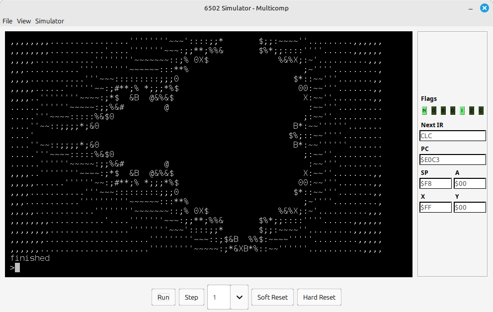 Here's a traditional test: on the simulator at a nominal 8MHz it took almost exactly two minutes (and at a nominal 1MHz twelve; something ain't right!)