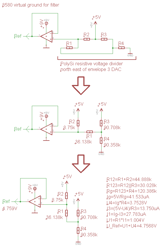 The 4.759V voltage for the virtual ground is generated by a PolySi resistor divider