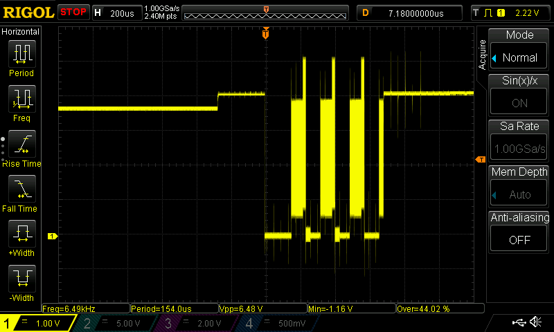 That's a great question. So when I hook my clock up to it, I get about 8 squarewave pulses on that screen. I'm currently running it at 250kHZ.