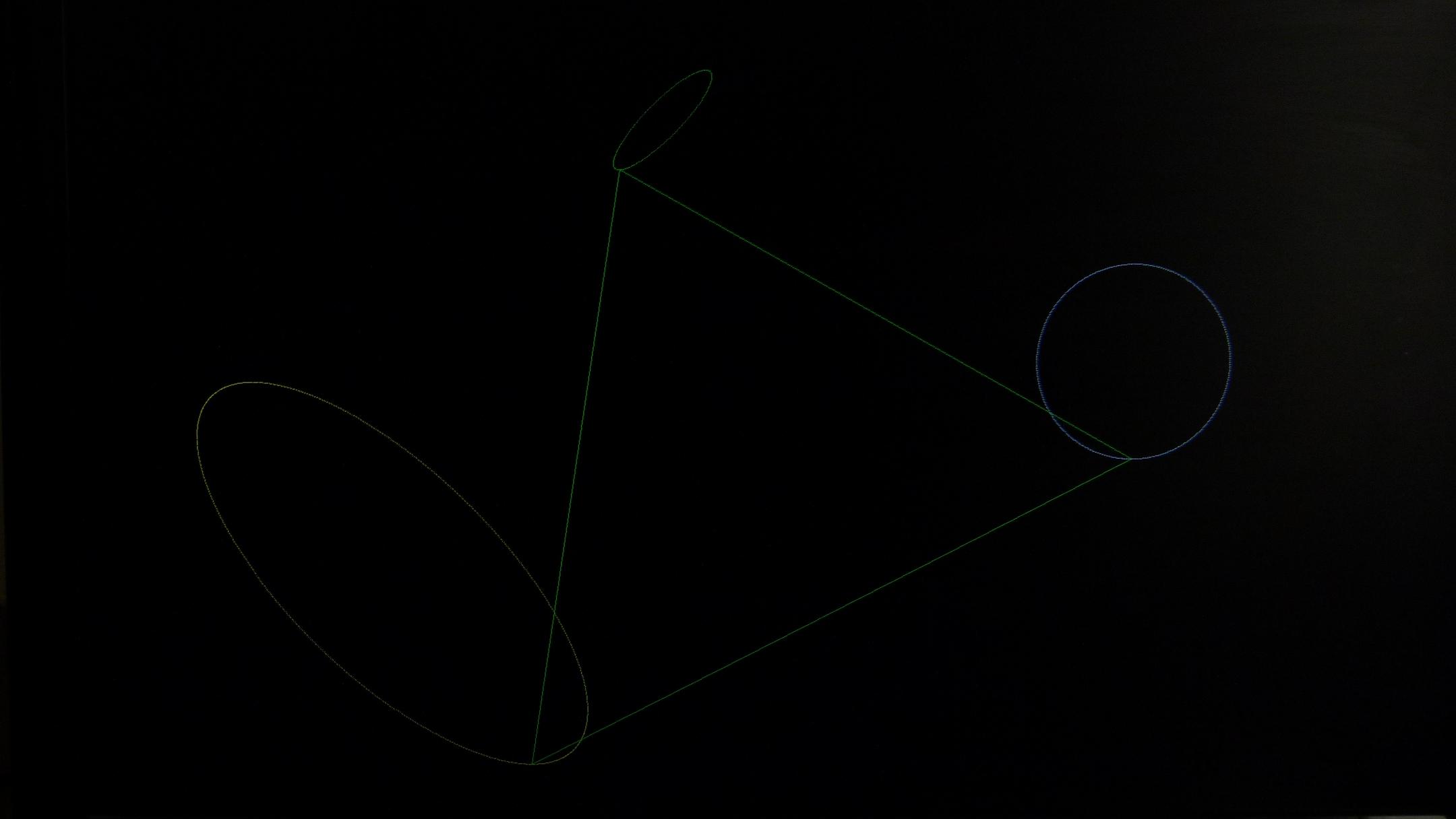 So I have 3 virtex modifiers. A simple triangle would be a first test. These ellipses and circle would not be plotted. Lines would be drawn to their circumferences in some regular order.