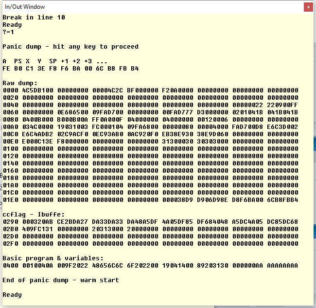 So it is back to plan A. On syntax error you should print the registers, stack, page 0 and the ccflag page.
