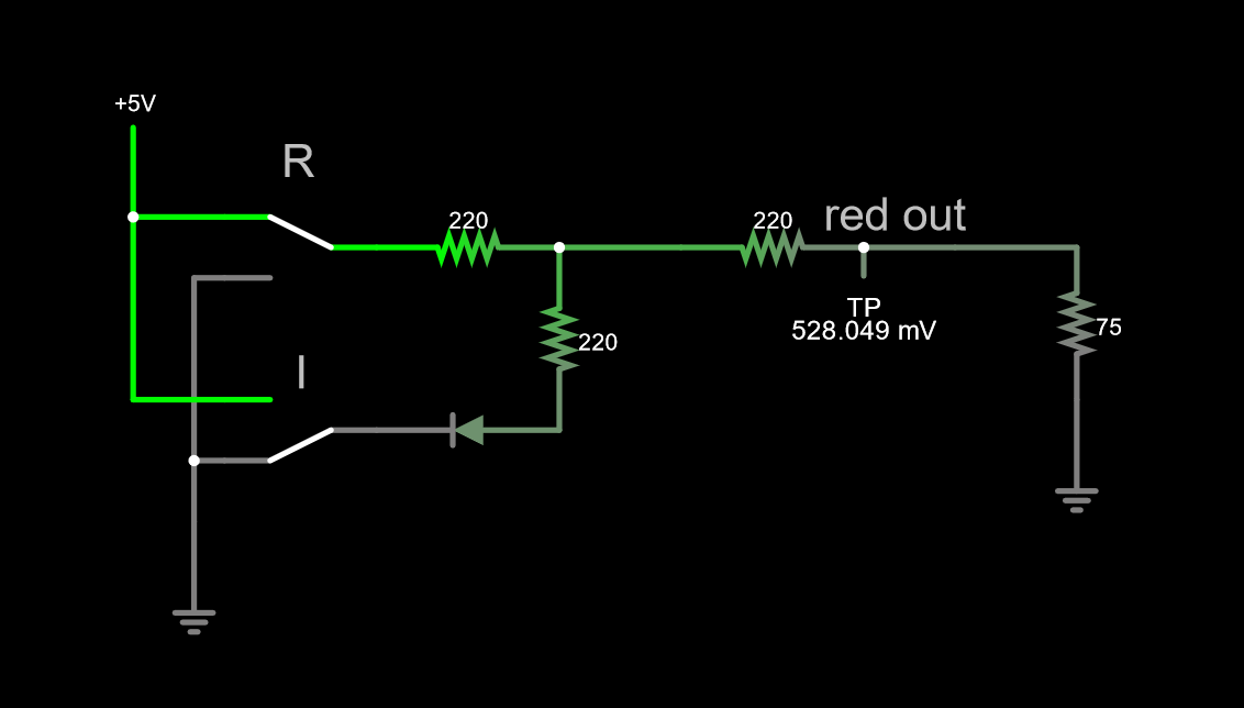 Sorry my link is full of silly extra switches. I have 7 shift registers going into these 3 colors, and I have to account for all the extra grounded values. 330 ohms total is the sweet-spot for each of my three 'color modes' it seems, so I change accordingly.