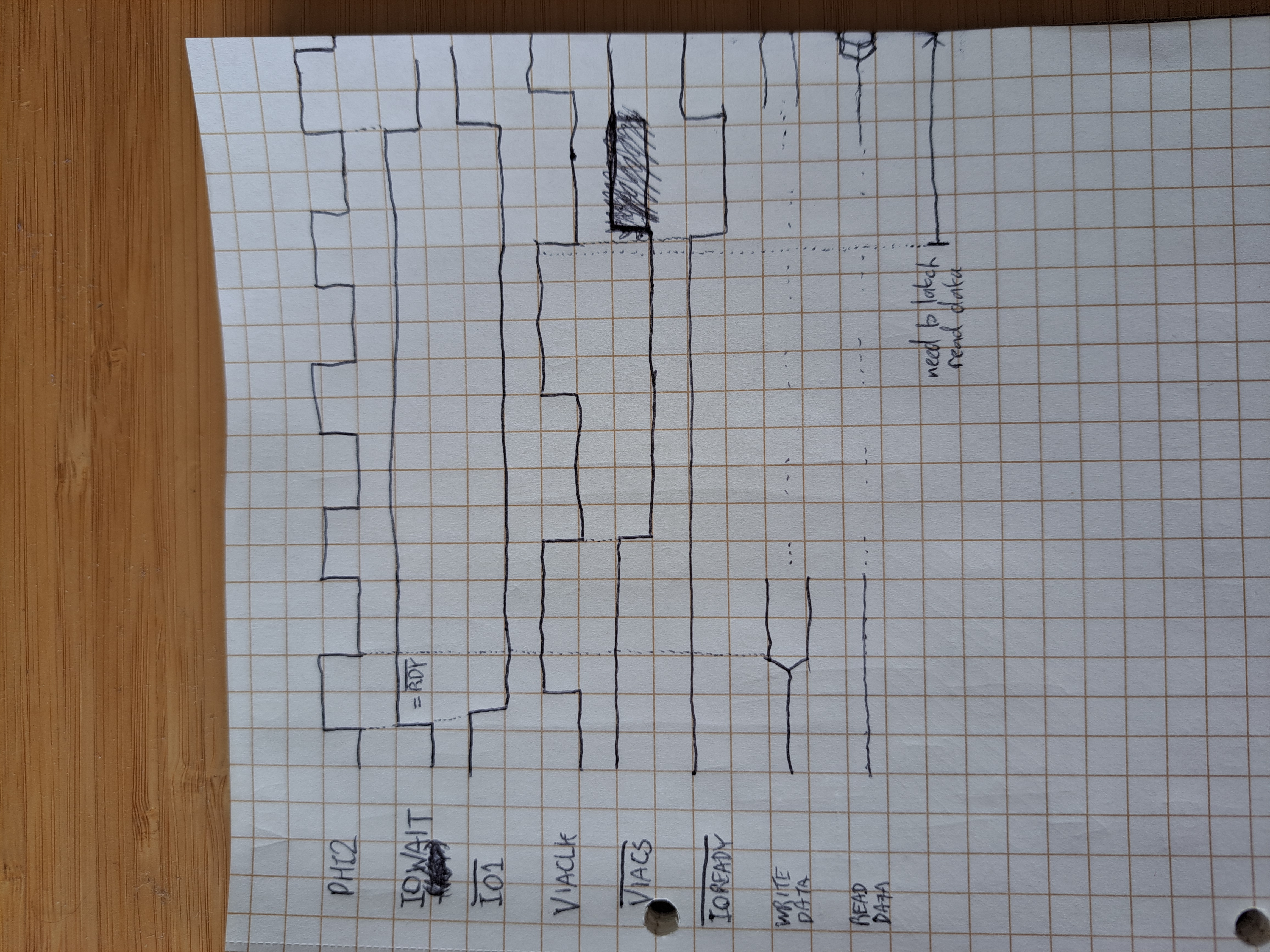 I also drew ~VIACS's flipflop getting set by ~IOREADY being low, meaning that once we've found the next falling edge of VIACLK, we turn off ~VIACS so that it doesn't stay low for another rising edge of VIACLK.