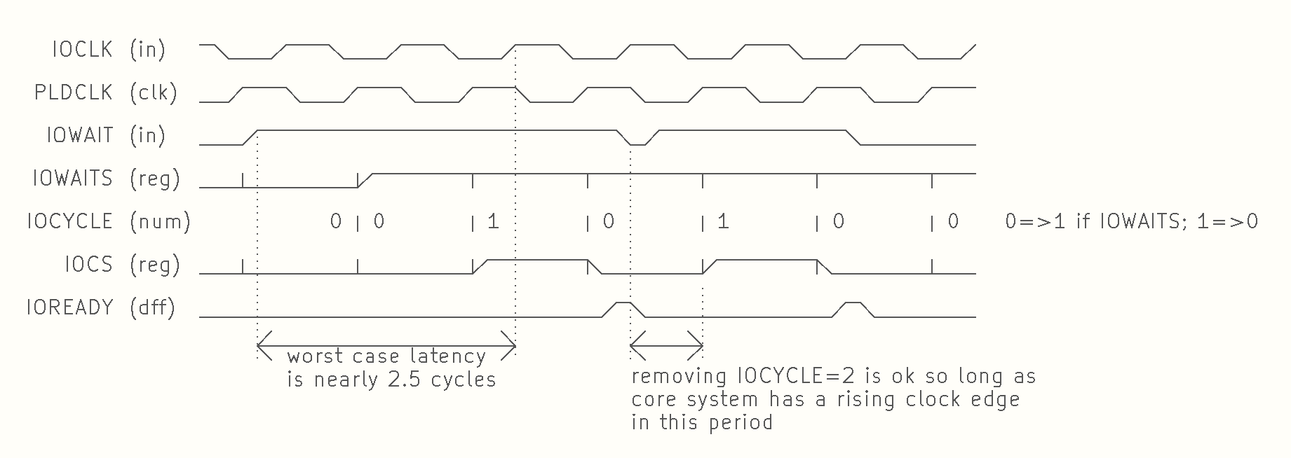 I also illustrated there the worst case timing between the core system asking for an I/O cycle and the I/O module being able to perform the operation - which happens during the IOCLK high phase in IOCYCLE=1.