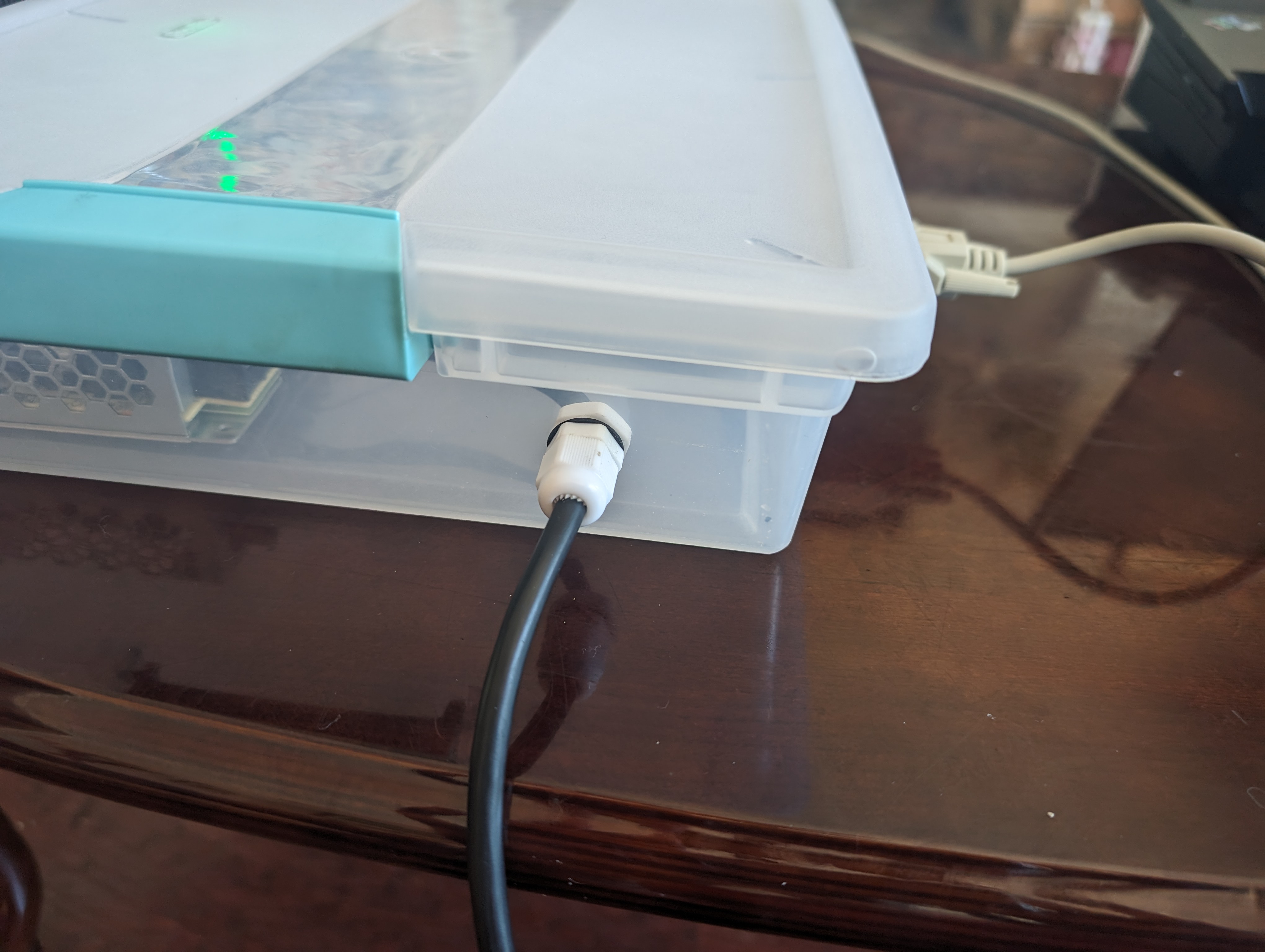 As Mary Berry would say, "It does look home-made." The keyword here is "semipermanent." Everything is adhesive mounting foam, gorilla glue, and heavy card, rather than the ABS plastic, acrylic, and steel I have on the back burner for sturdier projects. Still, it's nice to have a power switch, reset button, and serial port that are away from the breadboards and able to take a little more pressure.