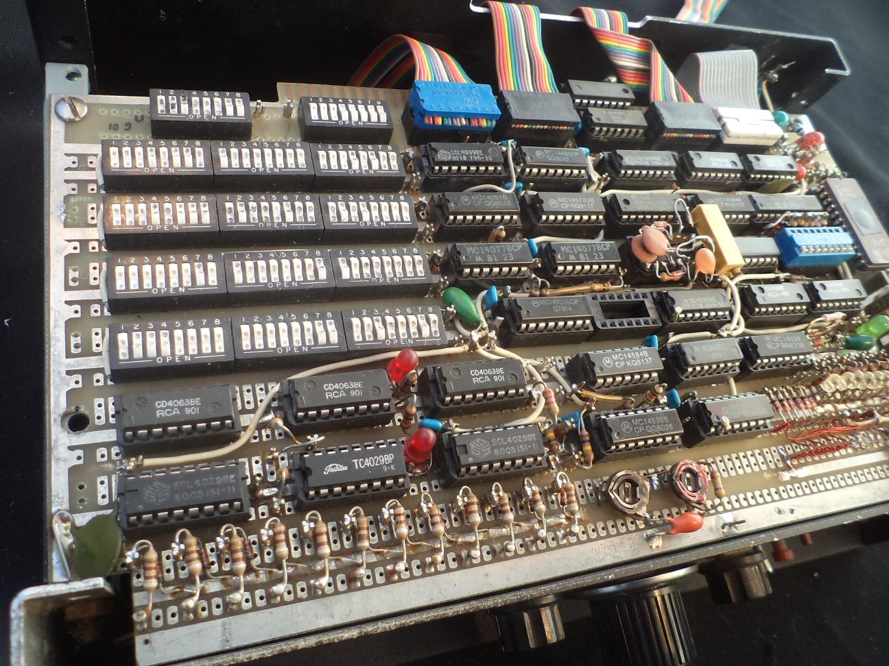 I'm late to the party, but maybe now is a good moment to slip in with another sublime/ridiculous case study on the diode ROM theme. :) The photos above show a circuit board with a diode array on one side and a DIP switch array on the other. Every diode has a switch in series, and the result could perhaps be called a PPROM, or Pencil-Programmable Read Only Memory! (Or, rather than a pencil, you could use a prod or other poking-tool instead.) :mrgreen:
