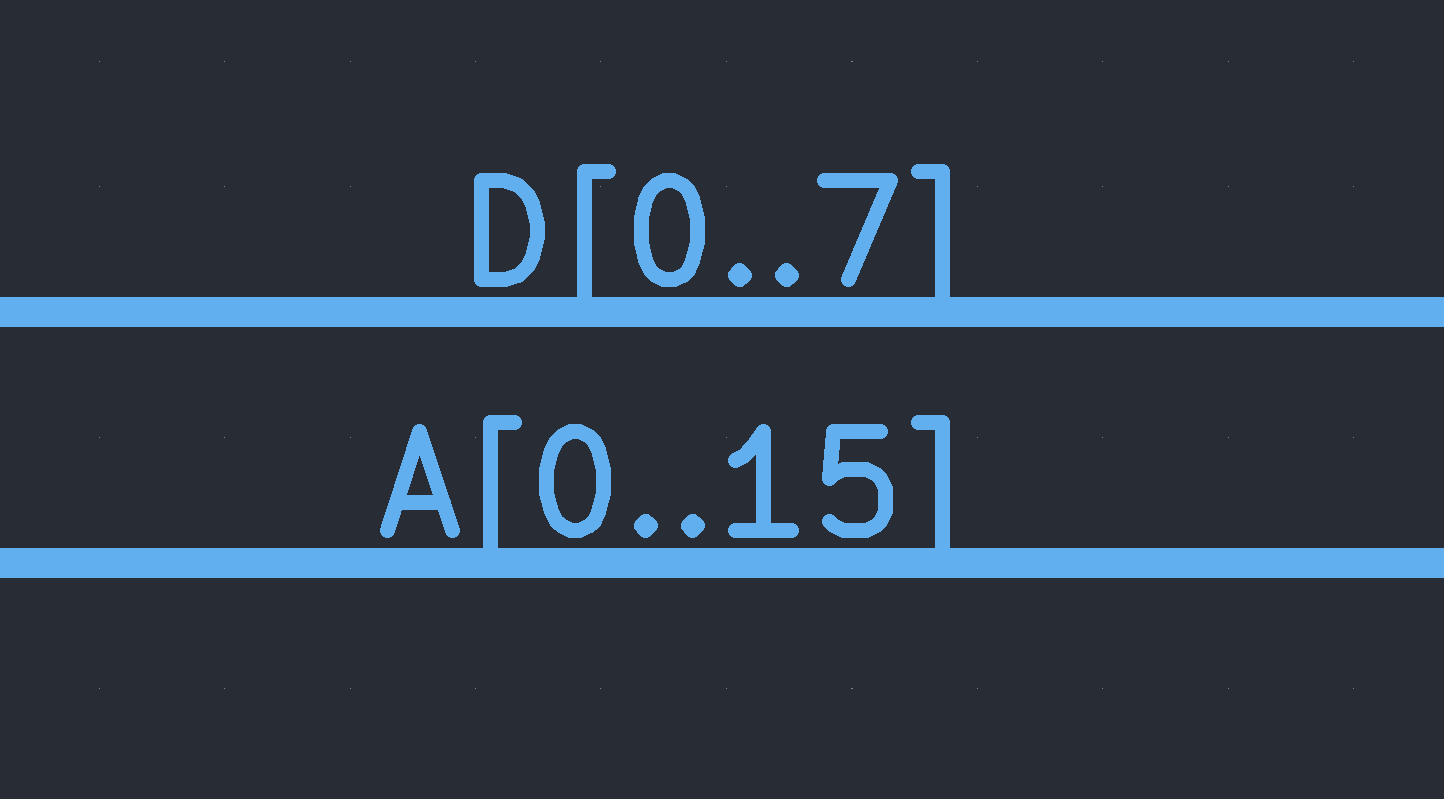 I'm trying to connect a data bus between a 6502, SRAM, and flash ROM. There are a couple of youtube tutorials for this that I've found, so I've gotten to the point where I can actually make the bus. However. Once you give labels to all the pins that are supposed to connect to the bus, you have to give a label to the bus itself so that it knows those pins are its members. There's a little "create label" tool that looks like an A with a line under it. When you use that tool, you get a label that looks like this: