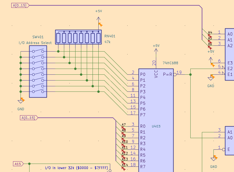 Here's today's KiCAD headscratcher. I wired up the CPU, RAM, and ROM like this: