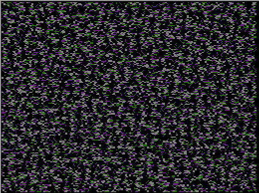 These images are of an Apple ][ hi-res screen after filling the screen approximately 30% full of "random" dots. The one without the ASL seems to have a slightly coarser "texture", but I think either one suits my purposes just fine. Do you (or anyone else) have any further comments before I add it to VTLC02? It's going to have a net cost of nine bytes, but I think the improved quality and slightly improved performance outweigh the cost.
