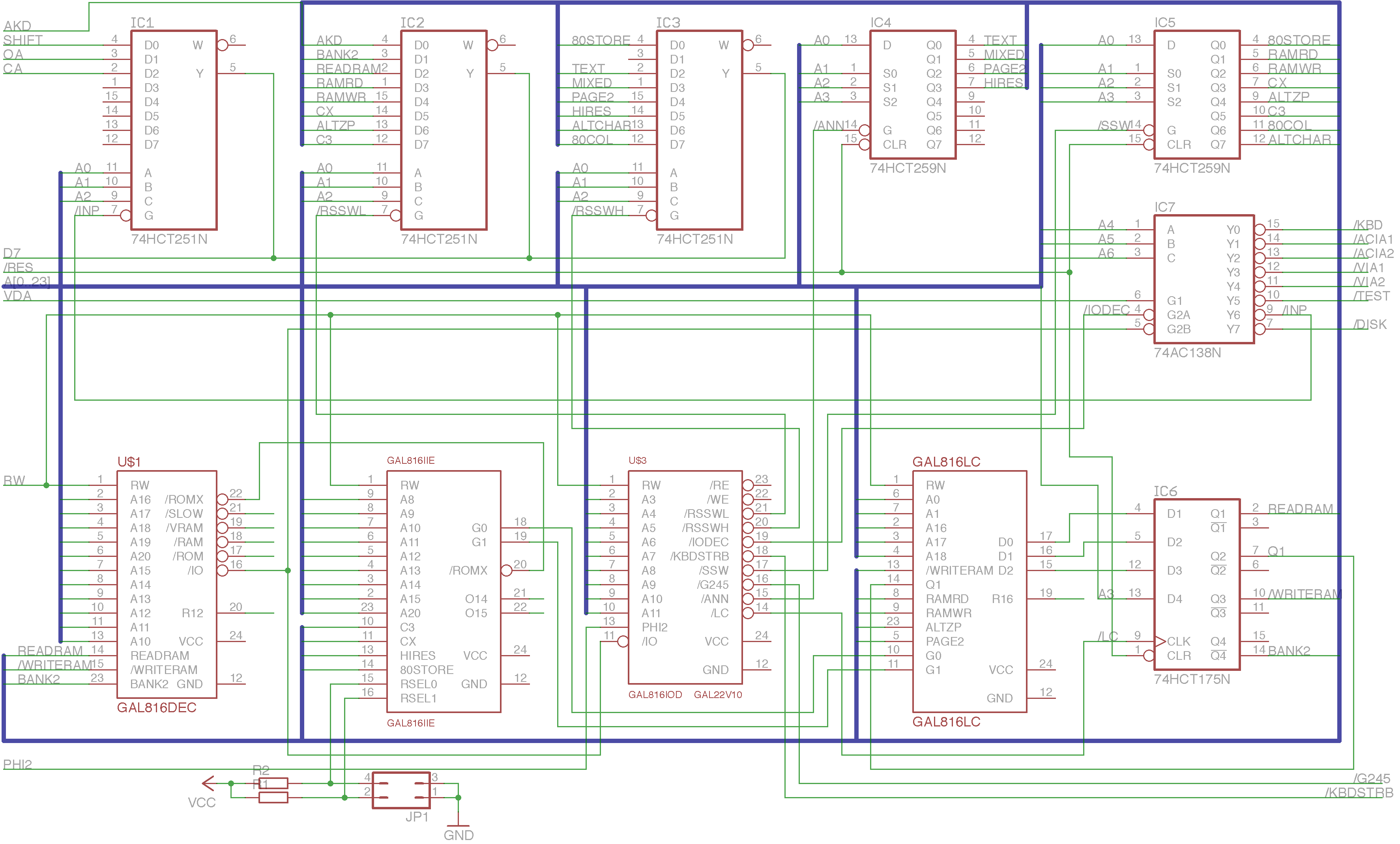 As next follows decoder, the internal IO required to emulate the Apple II and other logic packed into GALs