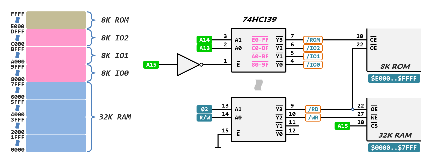cbmeeks is only going for 2MHz max here though, so there's not really any need to select the EPROM before phase 2 and get all the access time that becomes available that way unless the EPROMs are antiques of 250ns or slower.
