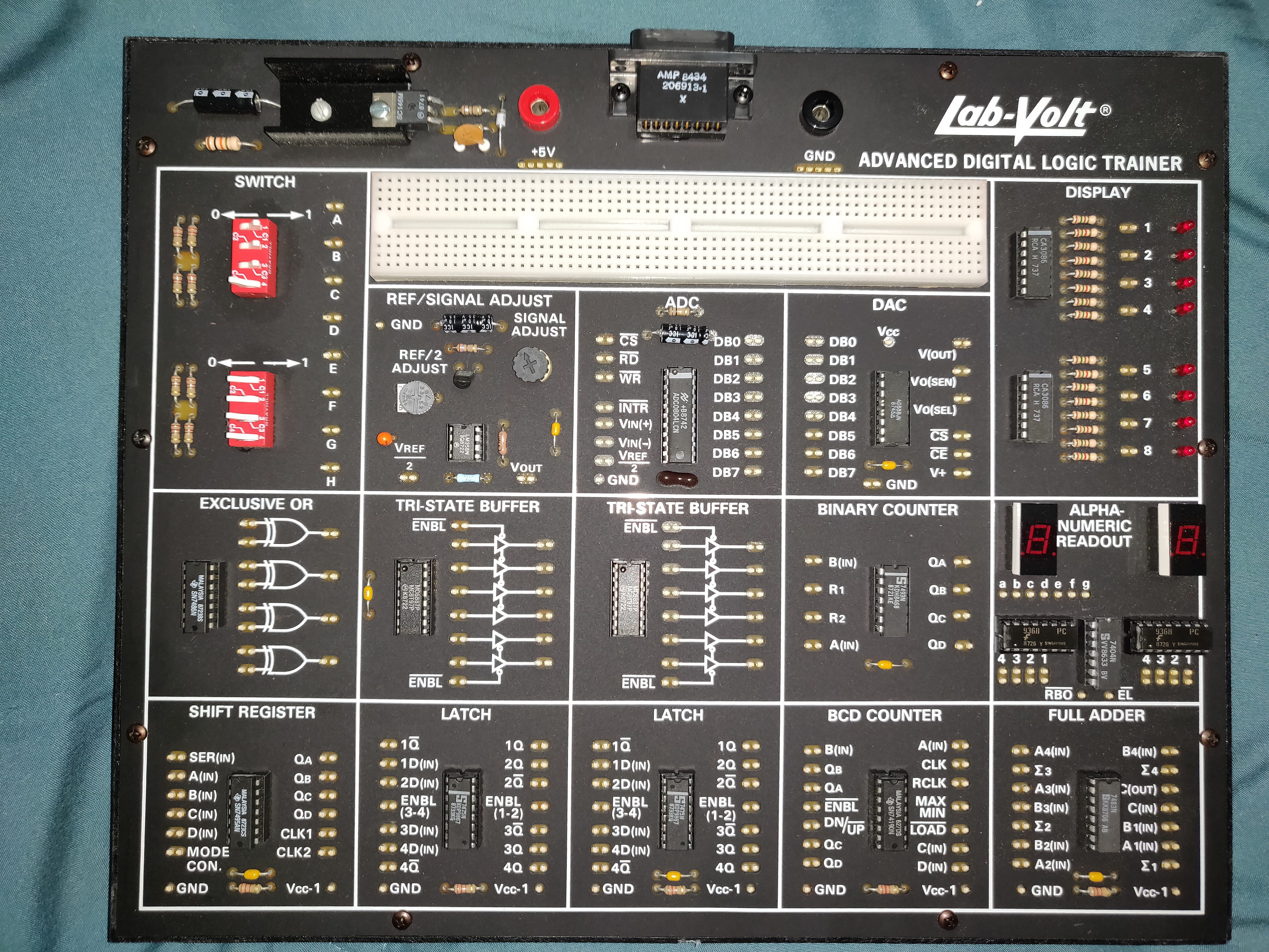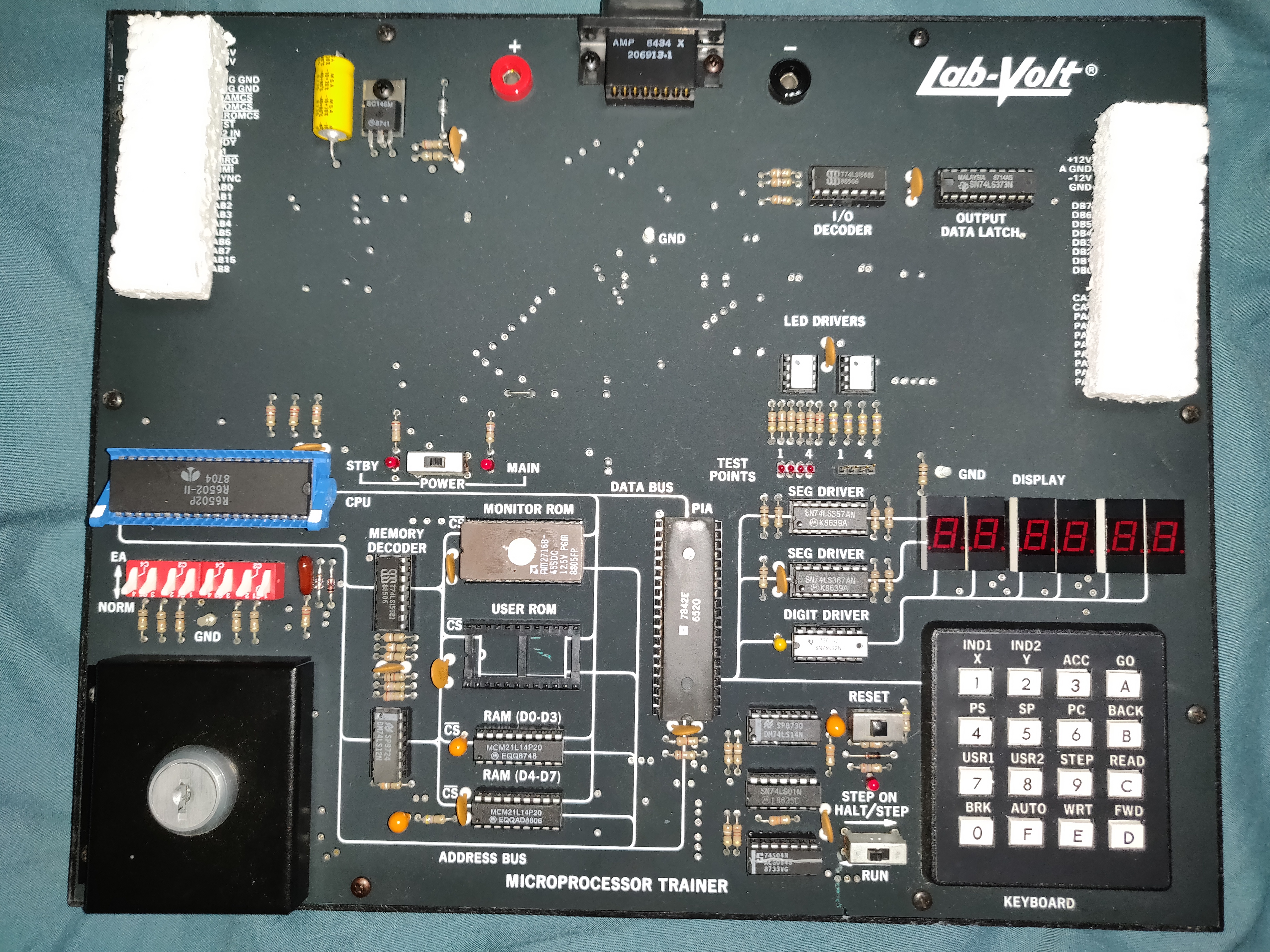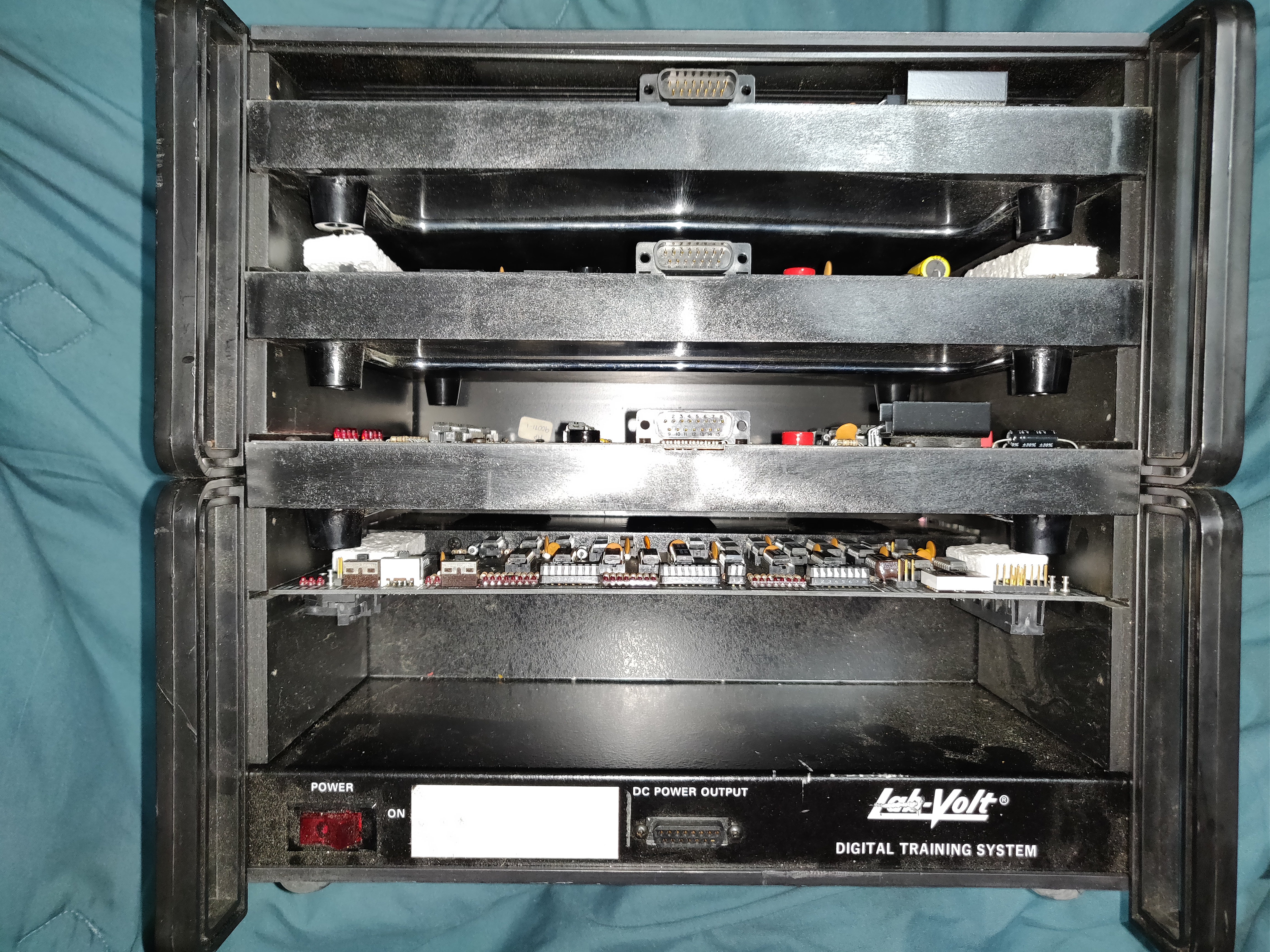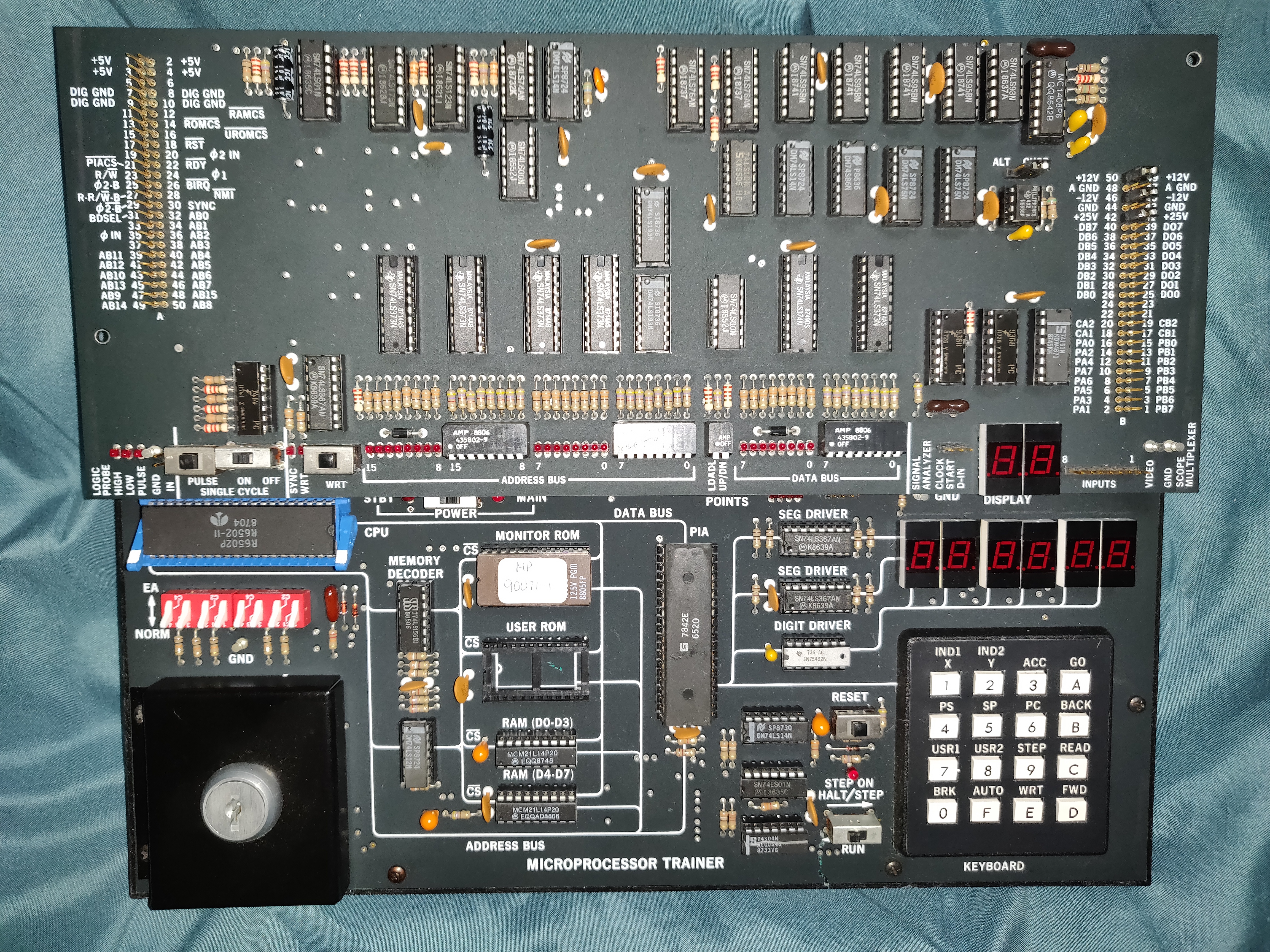 On the Microprocessor Trainer, there are 50 pin headers under the styrofoam (which I should have removed before taking my picture. Duh). I've got plenty of SCSI cables that should fit. The Digital Trainer boards also have a 50 pin connector on them.