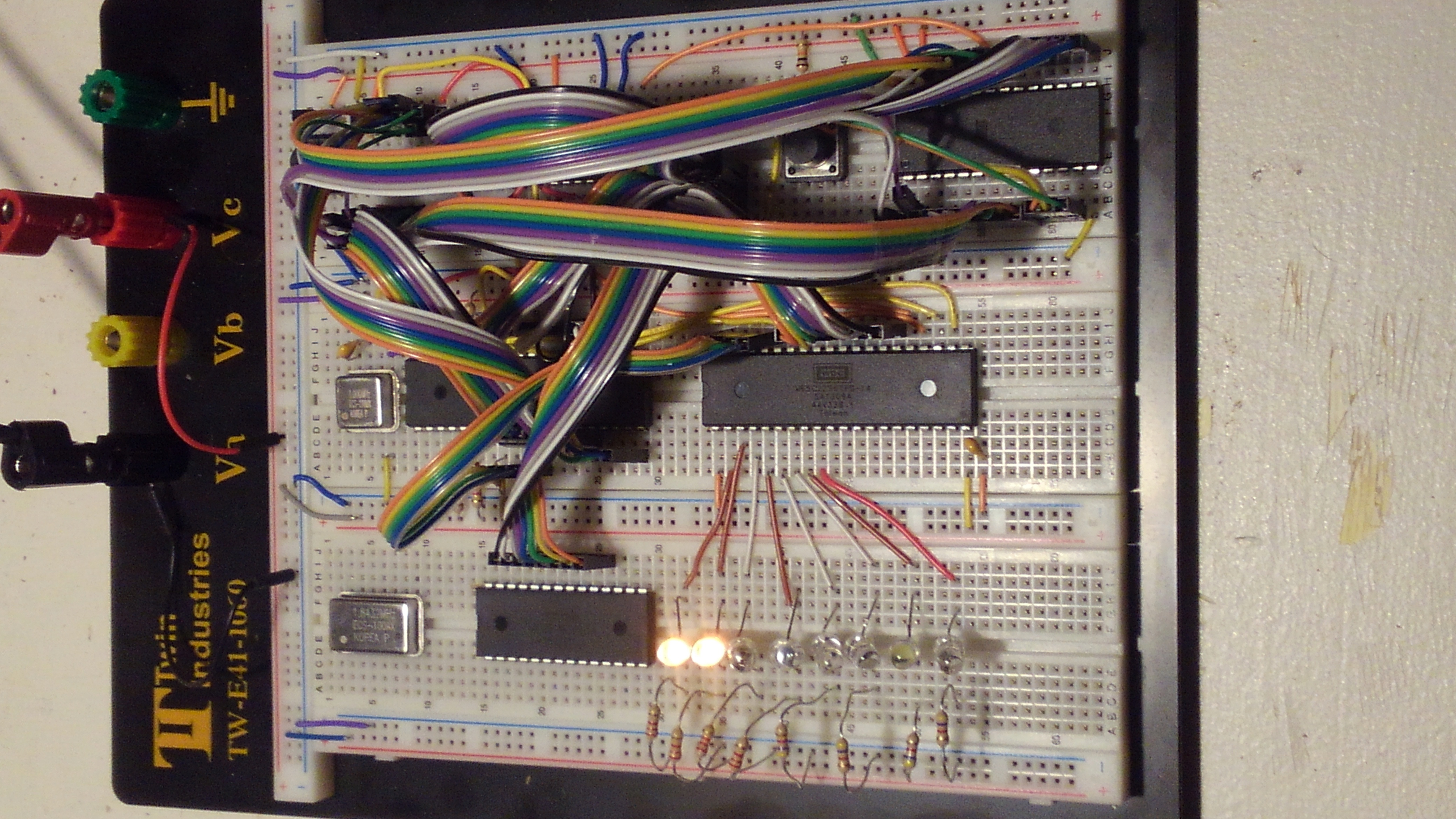 Here's a current pic. My wife was unimpressed with the two lit LEDs, but I'm ecstatic because they meant my computer added 1 +2 successfully