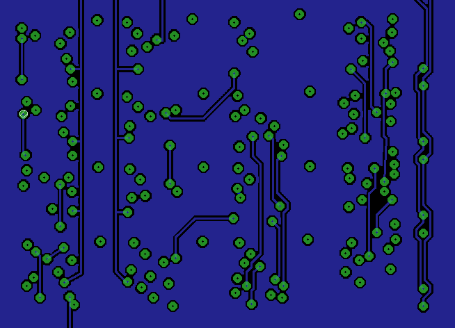 See for example the top layer bottom right. There are two vias close together, interrupting the flow of the ground plane. I don't like that, so I'll go fix things like that.