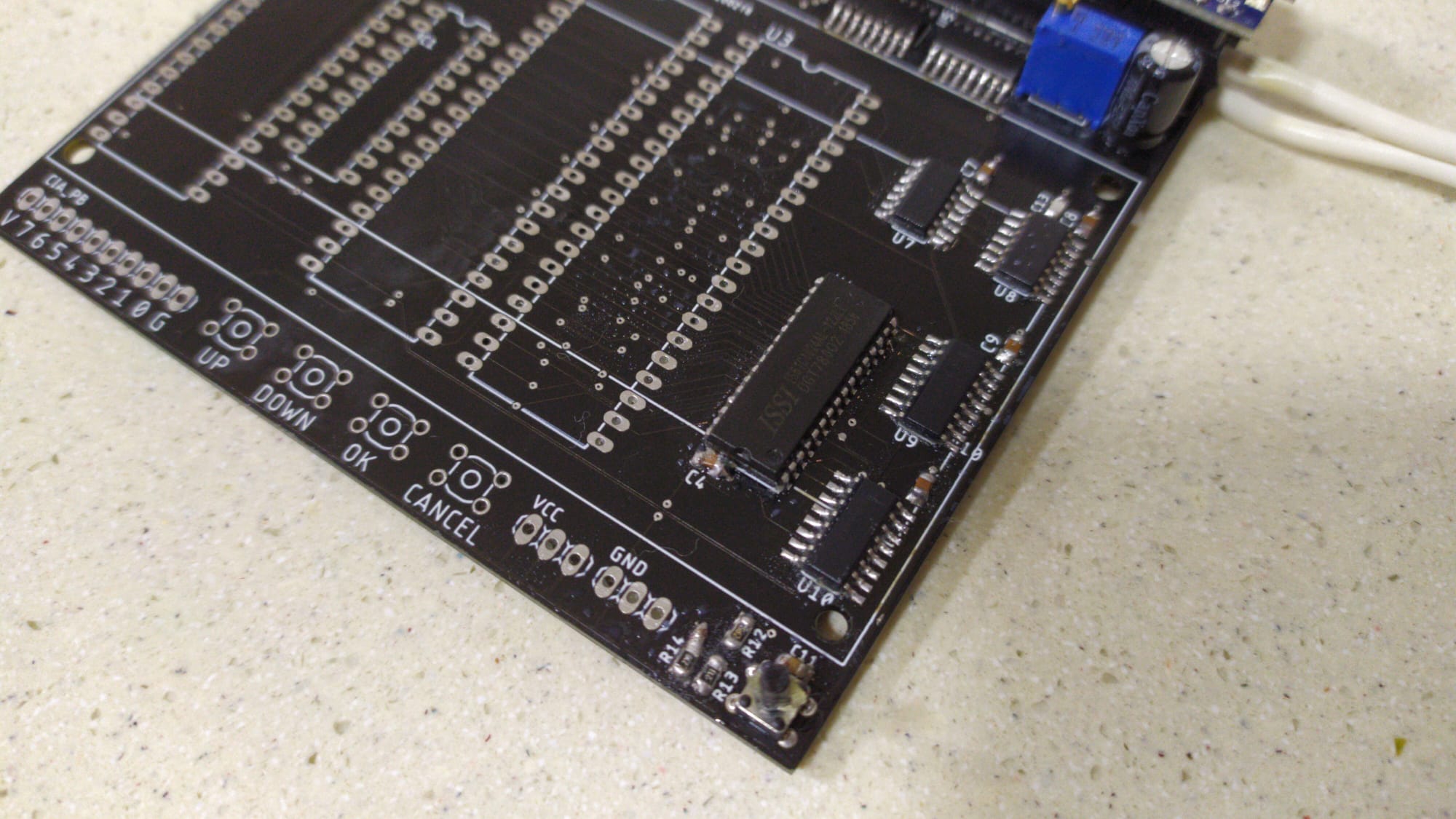 SRAM was the next on the line. Soldering the SOJ-32 has been very difficult, partially because I think the footprint I had wasn't 100% accurate. No matter how hard I tried, I couldn't completelly align the chip.