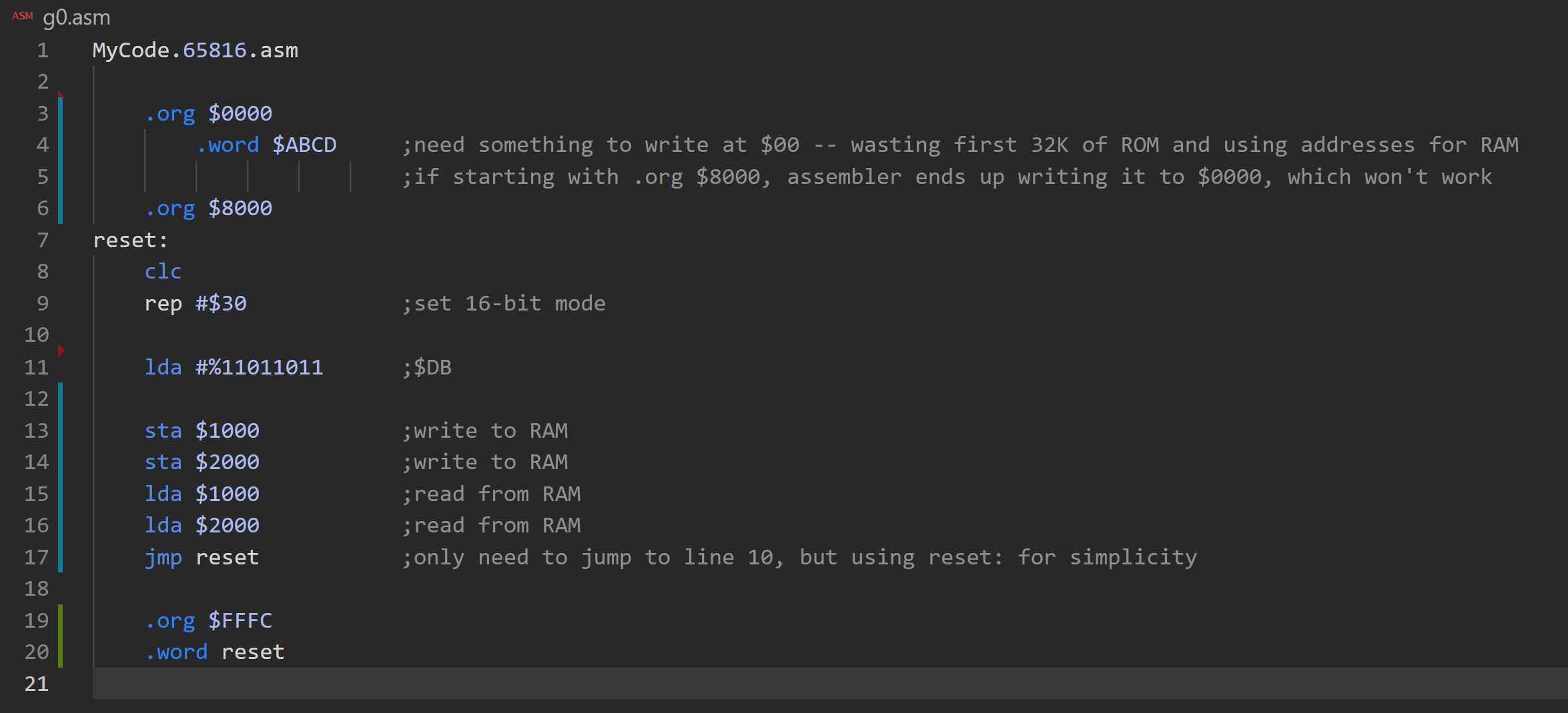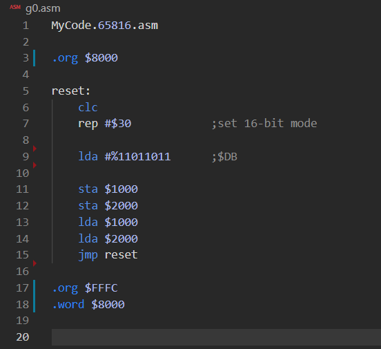 Then it continues at 0x0003 with 0xA9, which is your LDA #$DB