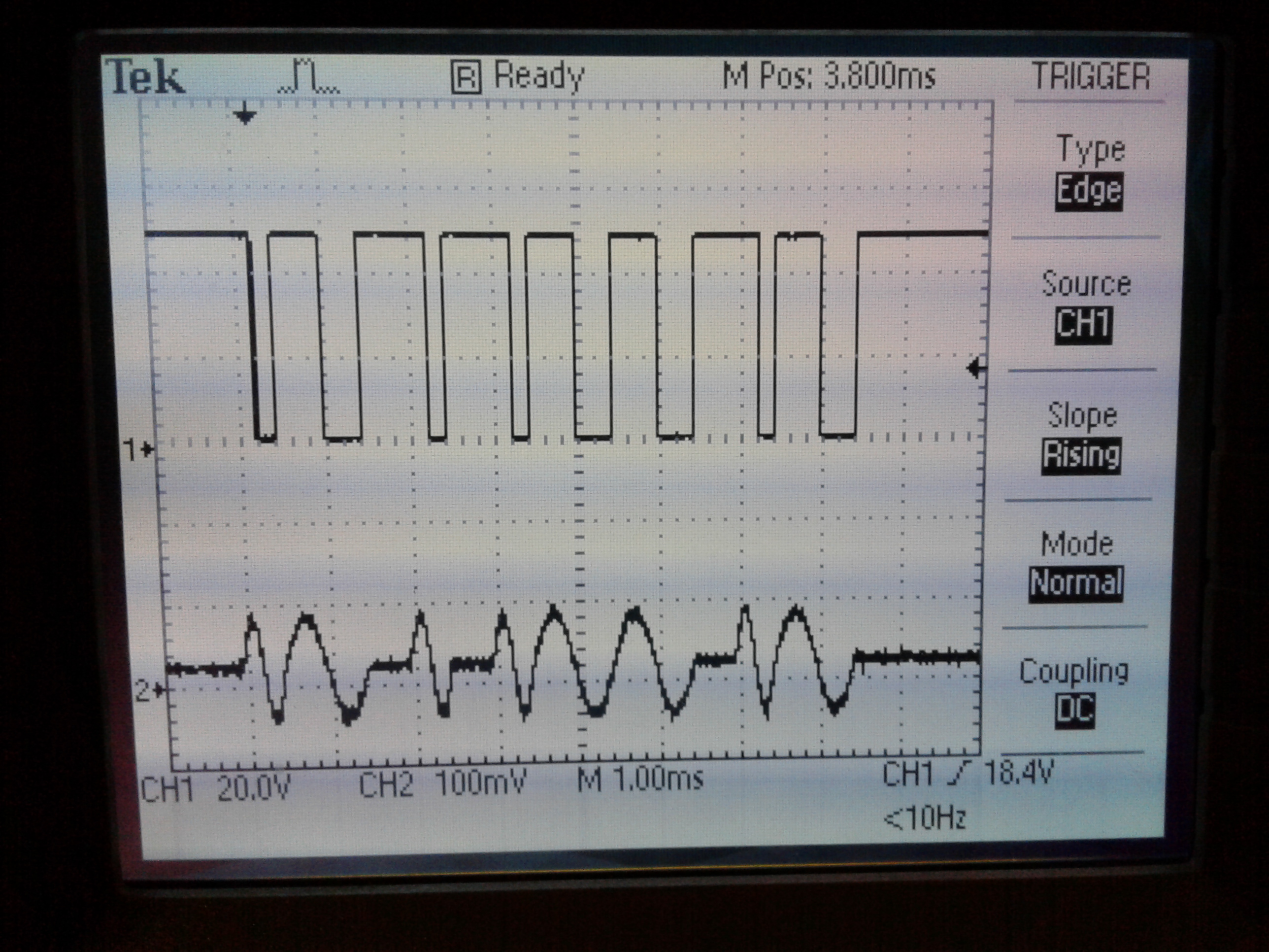 Aha! That reminds me of ws2811-style encoding (each bit starting high, ending low, varying cycle for 0/1). I guess that’s what sheep64 meant.