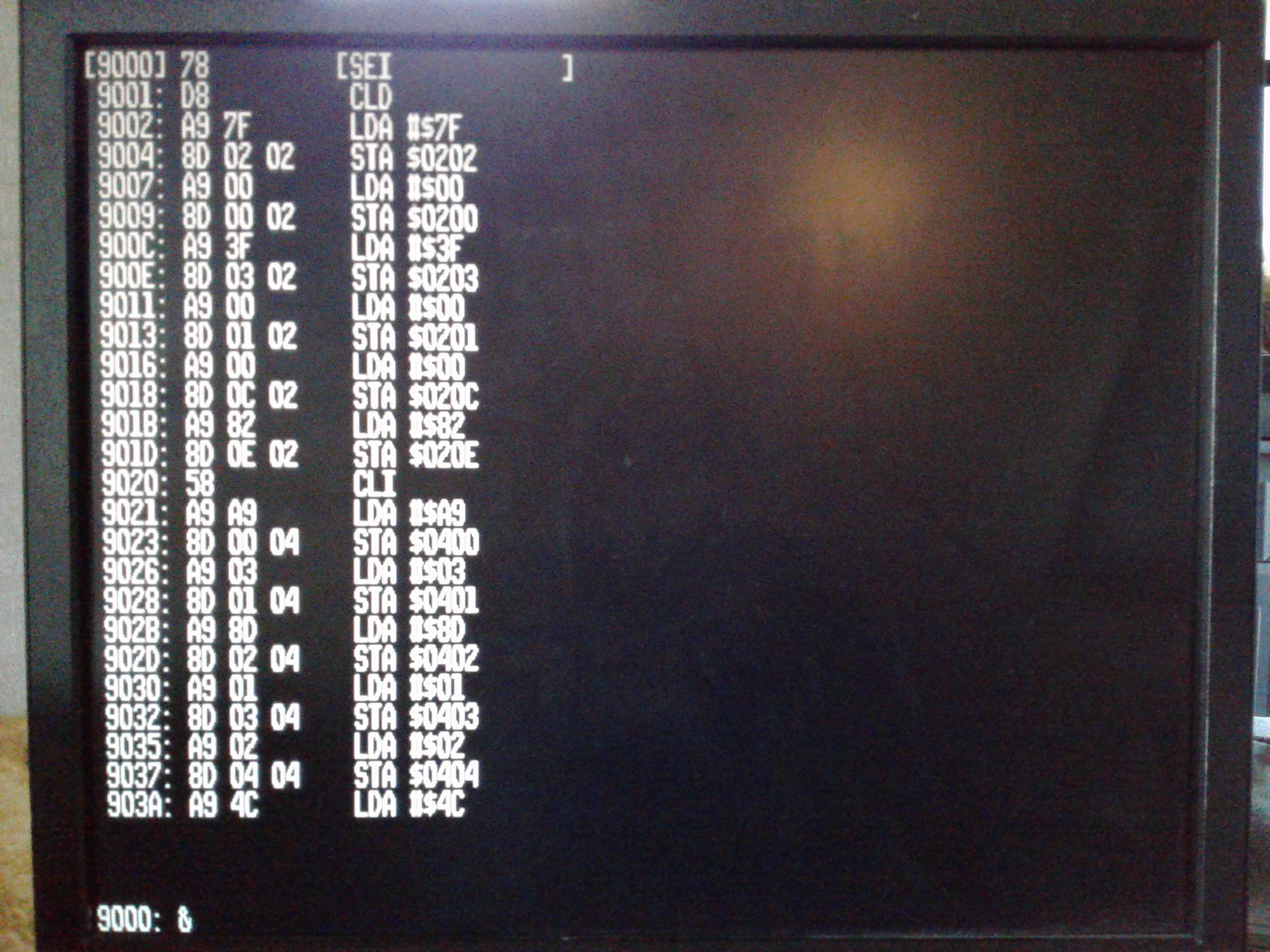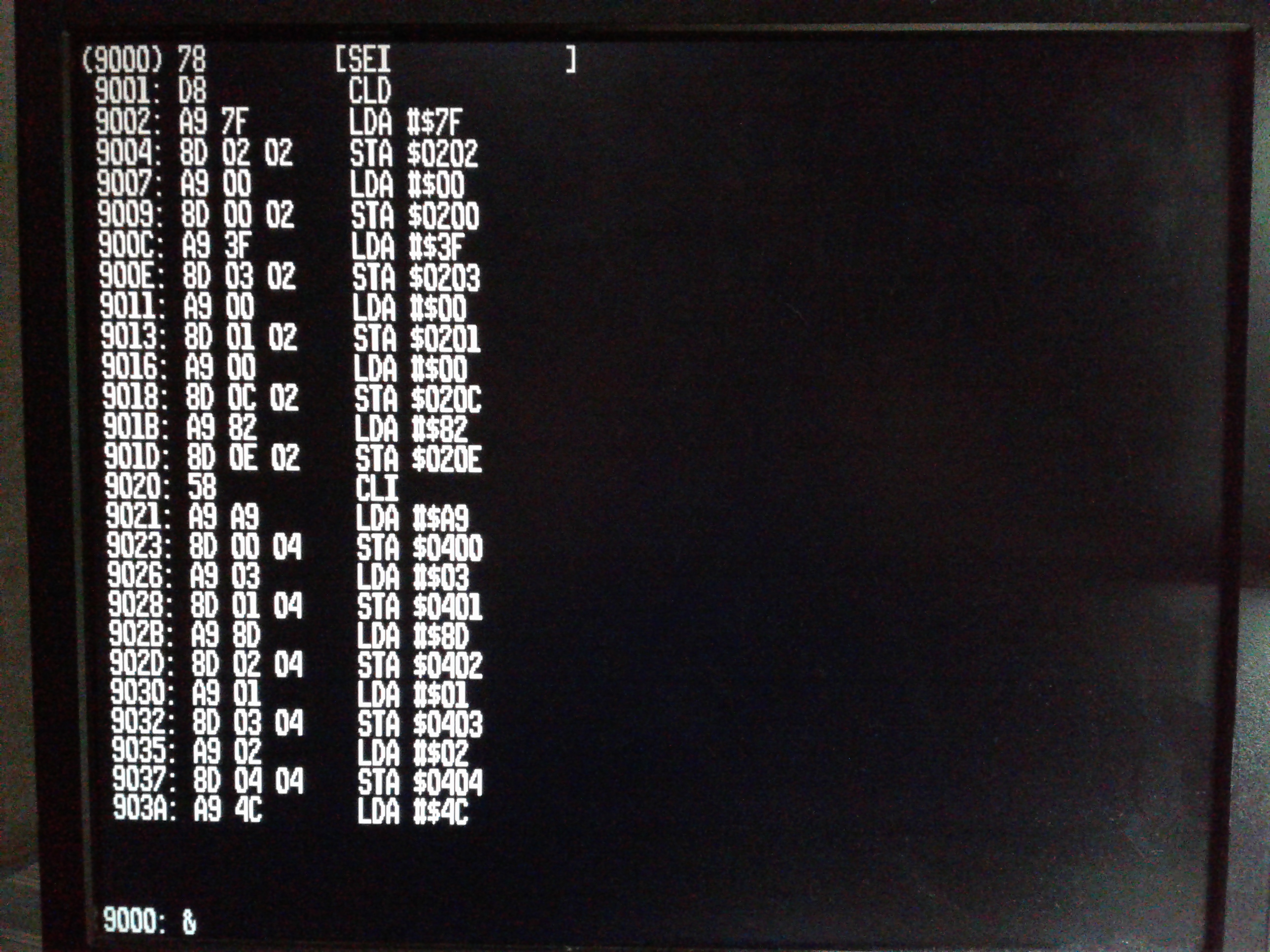 When I get around to implementing 80 column text for my C640 computer, and write a monitor for it, there's a good chance I'll end up with a more 'cluttered' screen myself. I used to work on games for Playstation 2 and 3, and I greatly miss the debugger that we had on those systems. The user could partition the main window into any number of panes, and select what was displayed in each: registers, different blocks of memory, disassembly, source code, console output, and so on. There was an option to have them update, and even edit memory, while code was running. We could set up a number of screen layouts for different kinds of debugging, and instantly flip between them. It was wonderful.