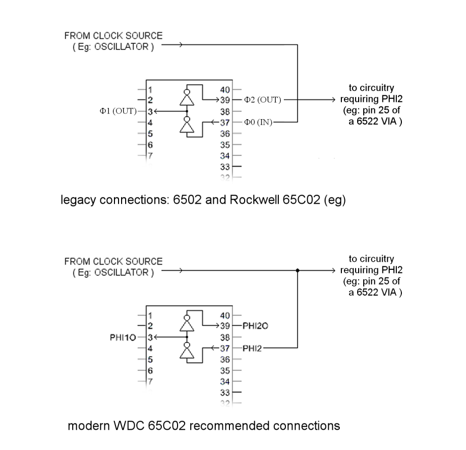 This razed some questions for me: what is the difference between those, is the Φ2 from a WDC the same as a Φ0 from all the other 65's, and what about the clock outputs, are they different as well❓