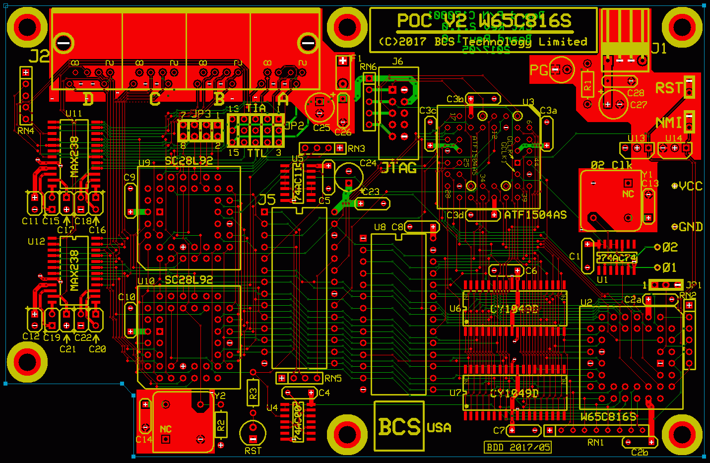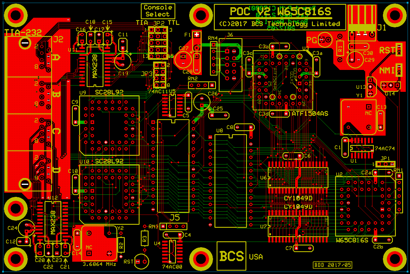 - The 65C816 and the two CY1049D static RAMs are in closer proximity to each other. Doing so reduced the length of many of the traces connecting the SRAMs to the '816 and eliminated some via.