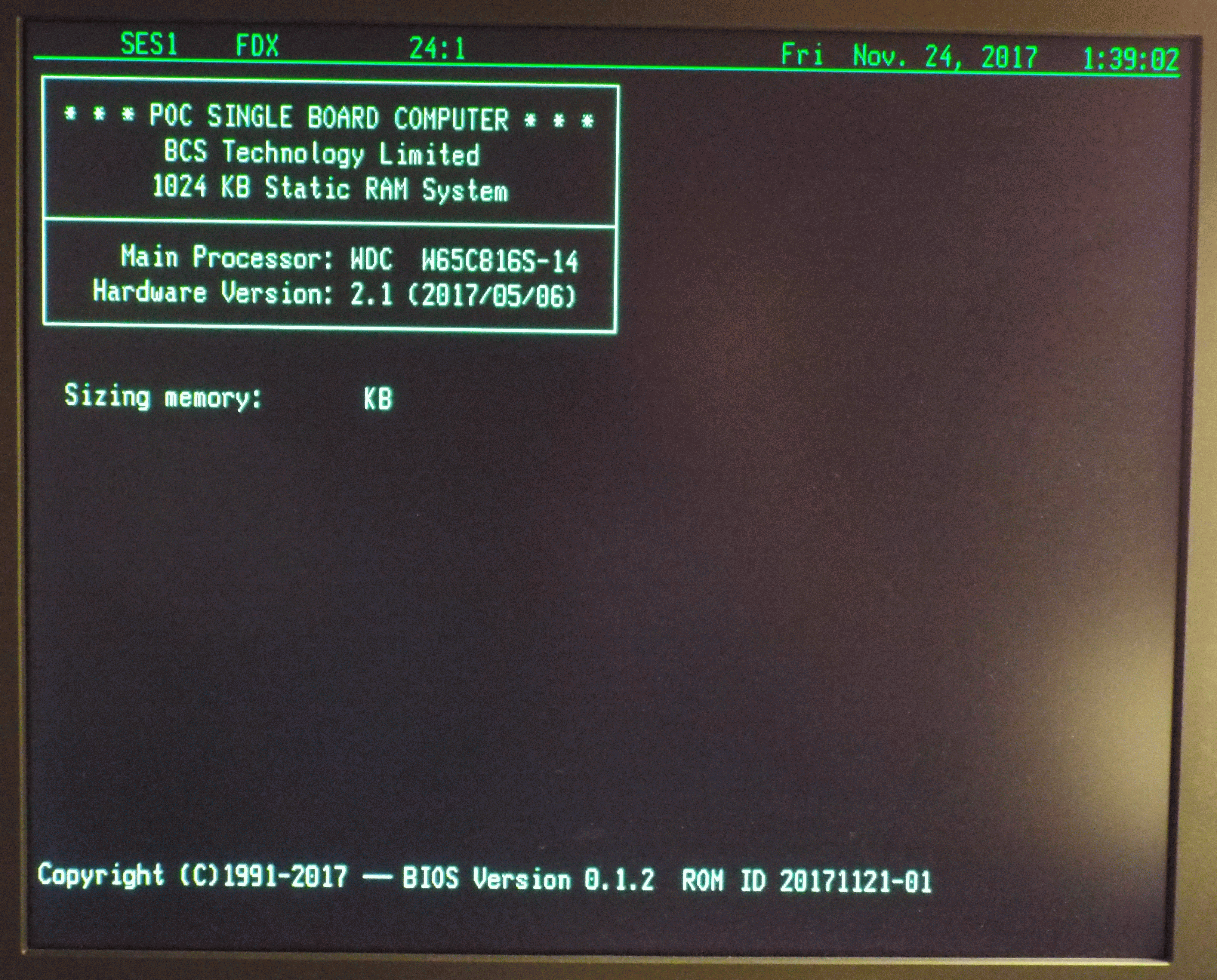 So now that I have working SIO on POC V2.0 I can "flesh out" the rest of the firmware and make some progress. An interesting exercise will be in writing the memory test routines that will scan the total RAM in the system and report how much was found.