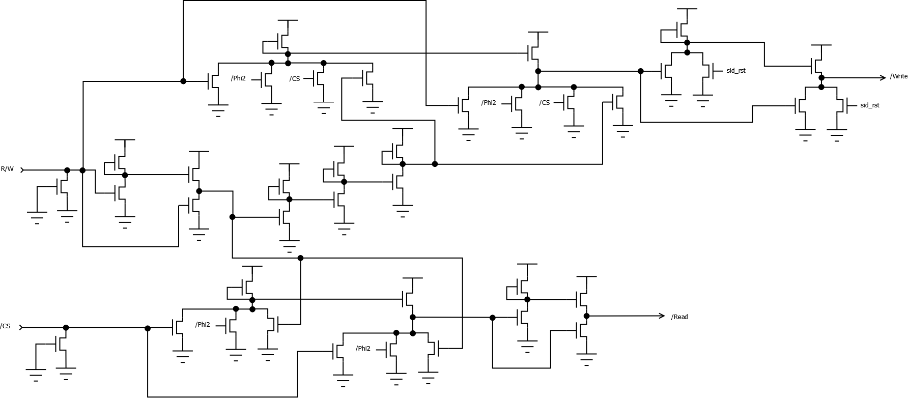 /Write = ¬(¬(RW ∨ ¬Phi2 ∨ /CS ∨ _RW) ∨ sid_rst) = (RW ∨ ¬Phi2 ∨ /CS ∨ _RW) ∧ ¬sid_rst