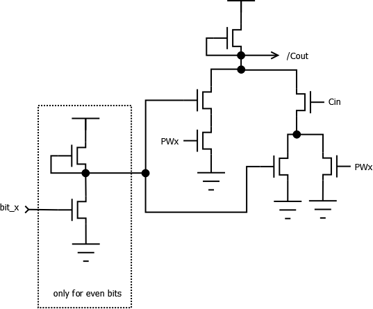 /Cout = ¬((bit_x ∧ PW_x) ∨ (Cin ∧ (bit_x ∨ PW_x)))