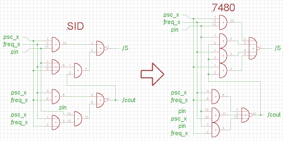 Oscillator adders, SID versus 7480: