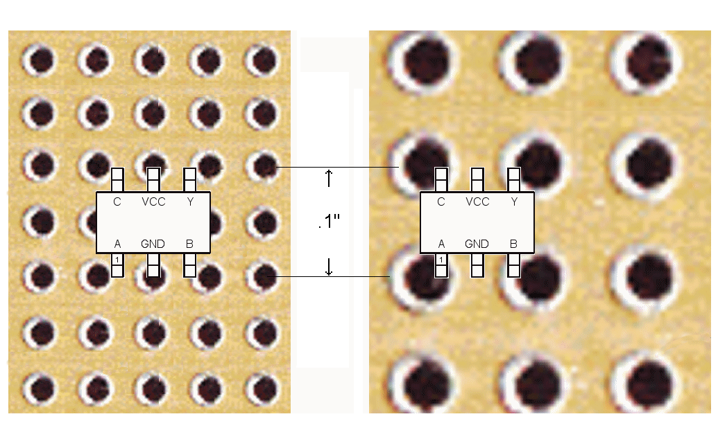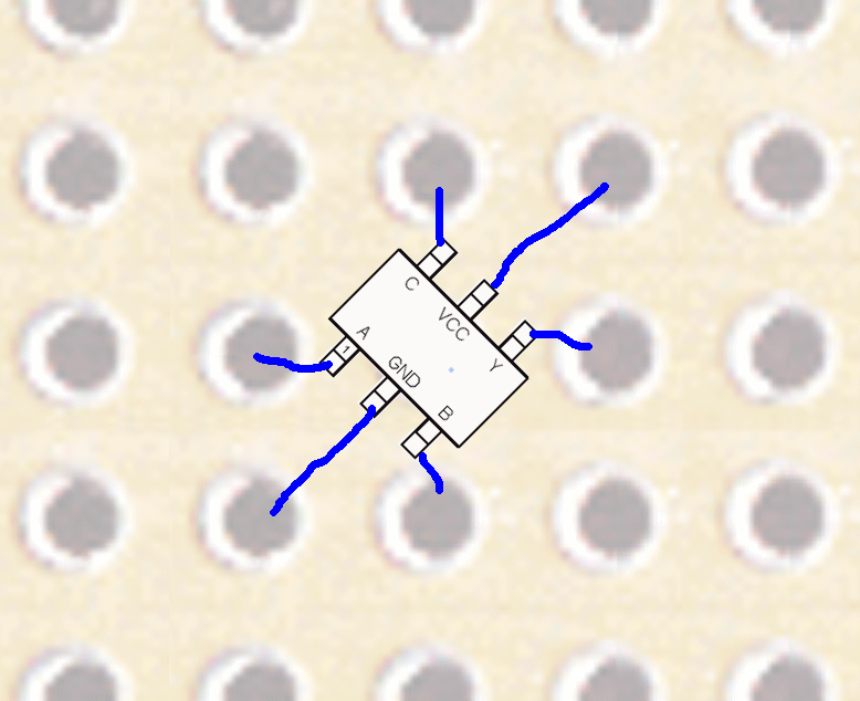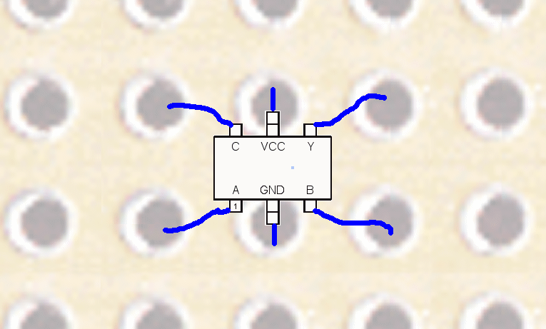 BTW, these "1G" gates don't all use the same pinout for power and ground -- some use the corner pins, and some (like the one in my diagram) use pins midway along each side. Also, some devices can run on voltages up to 5V and others are recommended for 3.3V or less.