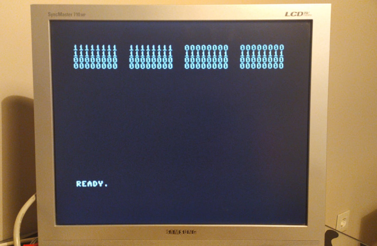 Remember how B0 performed flawlessly, both when connected via the expansion port, and when replacing CIA#2? Well, that's no longer true. I'm getting weird image artifacts when doing that, even using only B0. All registers work OK when connected into the expansion port, so it seems something's wrong with the port outputs. Until I figure it out, I'll do only testing via the expansion port.