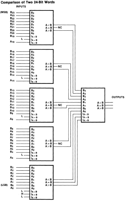 the picture on page 4-29 (page 74 of the PDF) about cascading 74F85 magnitude comparators had caught my attention: