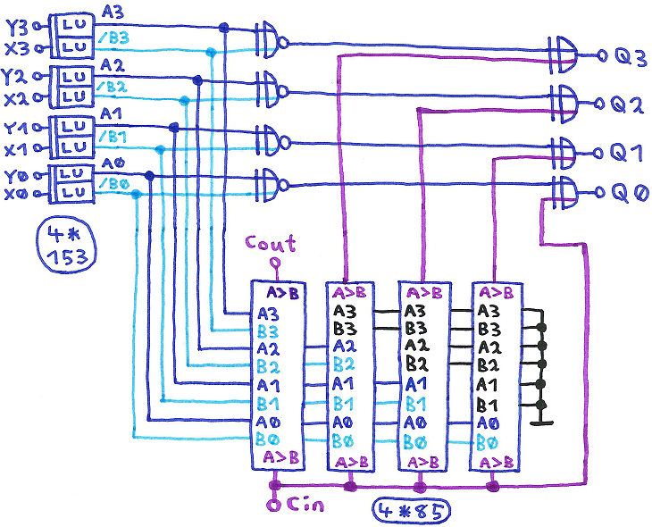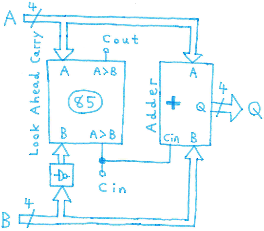 Now for a (hypothetical) 4 Bit ALU, with a 7485 based carry chain: