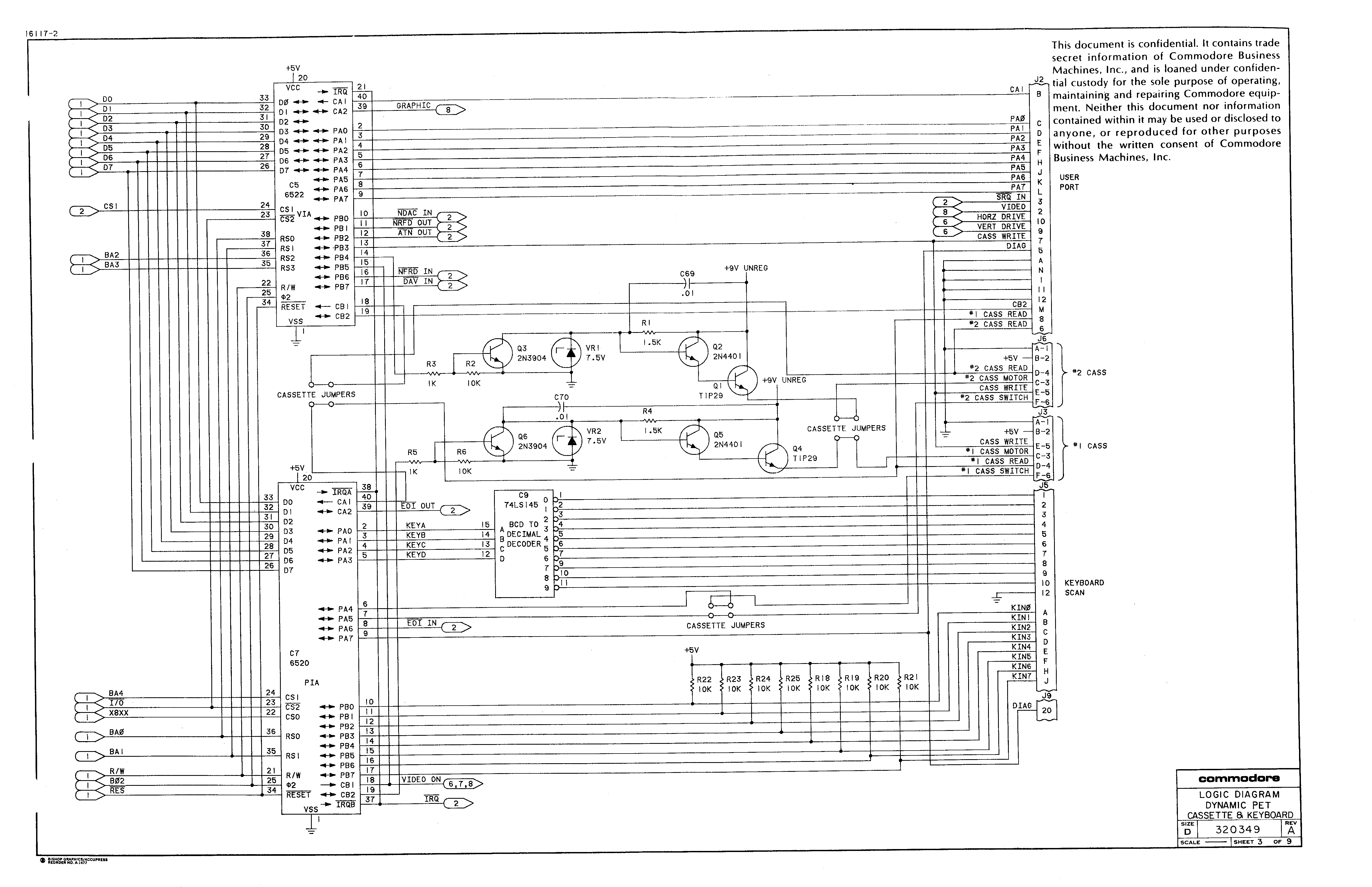 It's also possible that you have a revision of the PET motherboard that doesn't quite match the schematics. I'll let people more familiar with Commodore history comment further on that.
