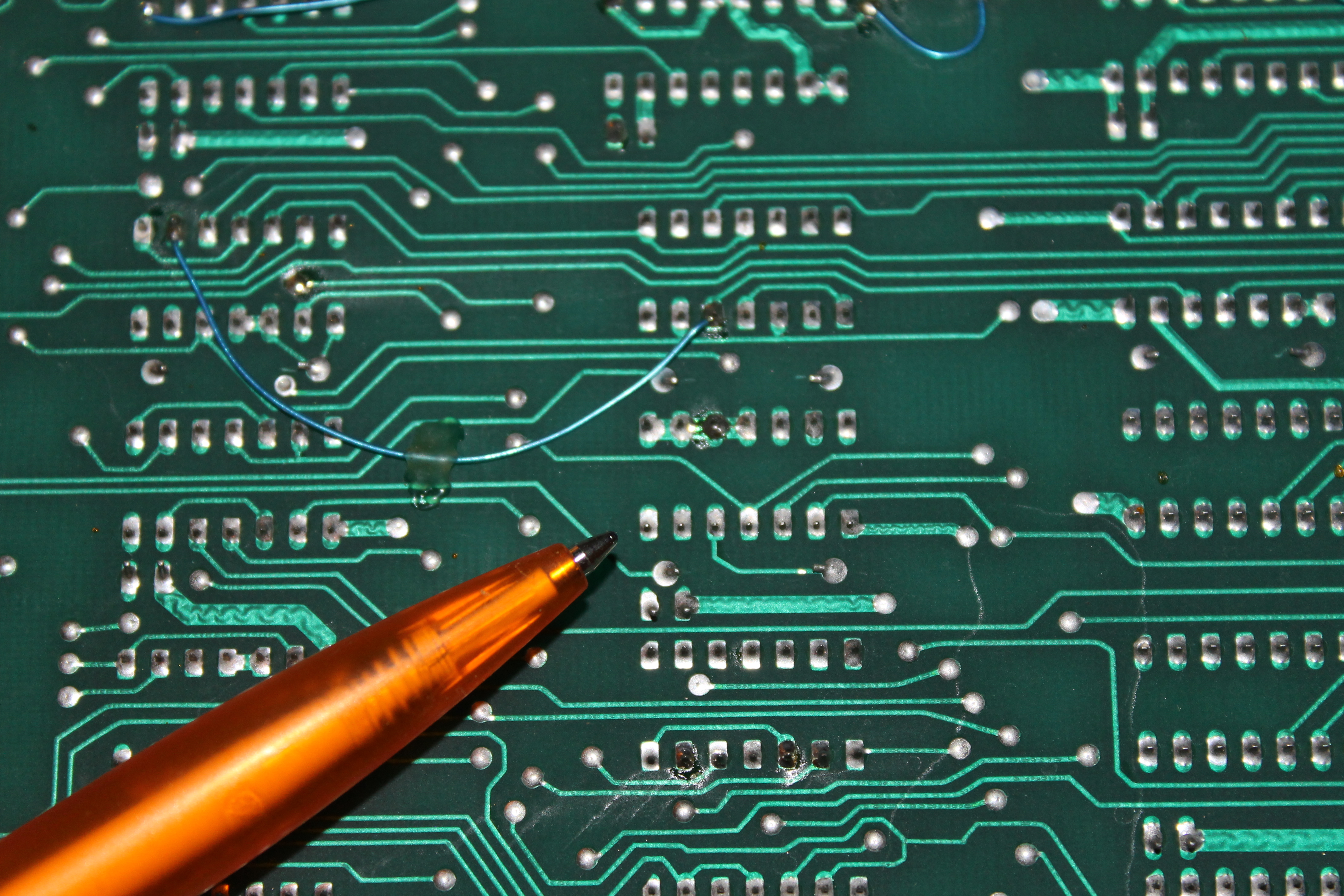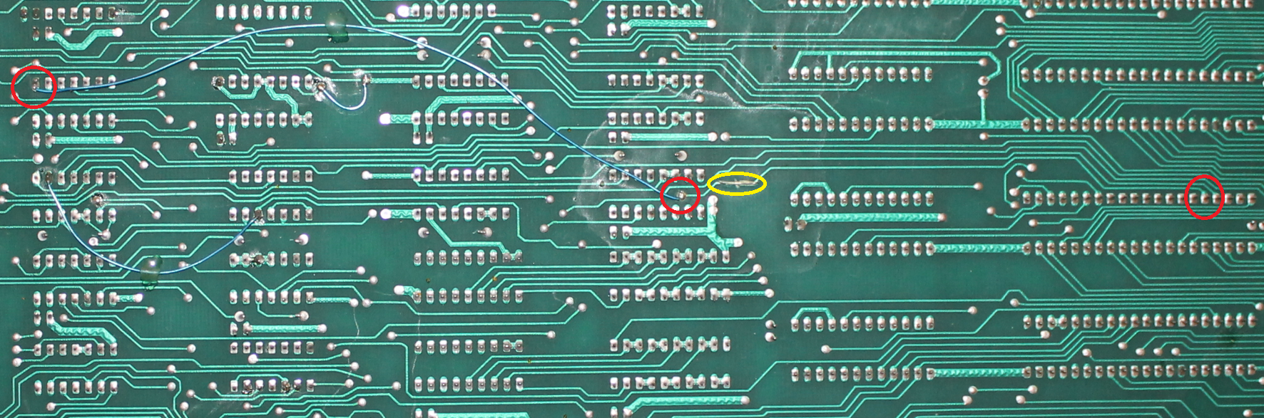 Keep in mind that for such a large PCB, it cost a lot of money to produce back then, hence track cuts and patch wires, modifications to add more RAM, and various other modifications including reliability improvements were rather more common compared to now. So even if the machine had never developed any faults, there is a good chance that it would still have many of the alterations.