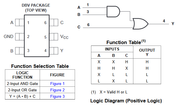 74LVC1G3208 and 74AUP1G3208 also are available, an OR gate feeding an AND gate.