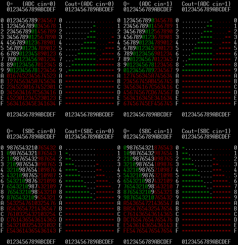 - C4, C8: are the low and high nibble carries respectively. C4 will tap the FET carry chain and will therefore add a bit of capacitance to the binary 8-bit carry chain (3pF). The additional delay should be minimal.