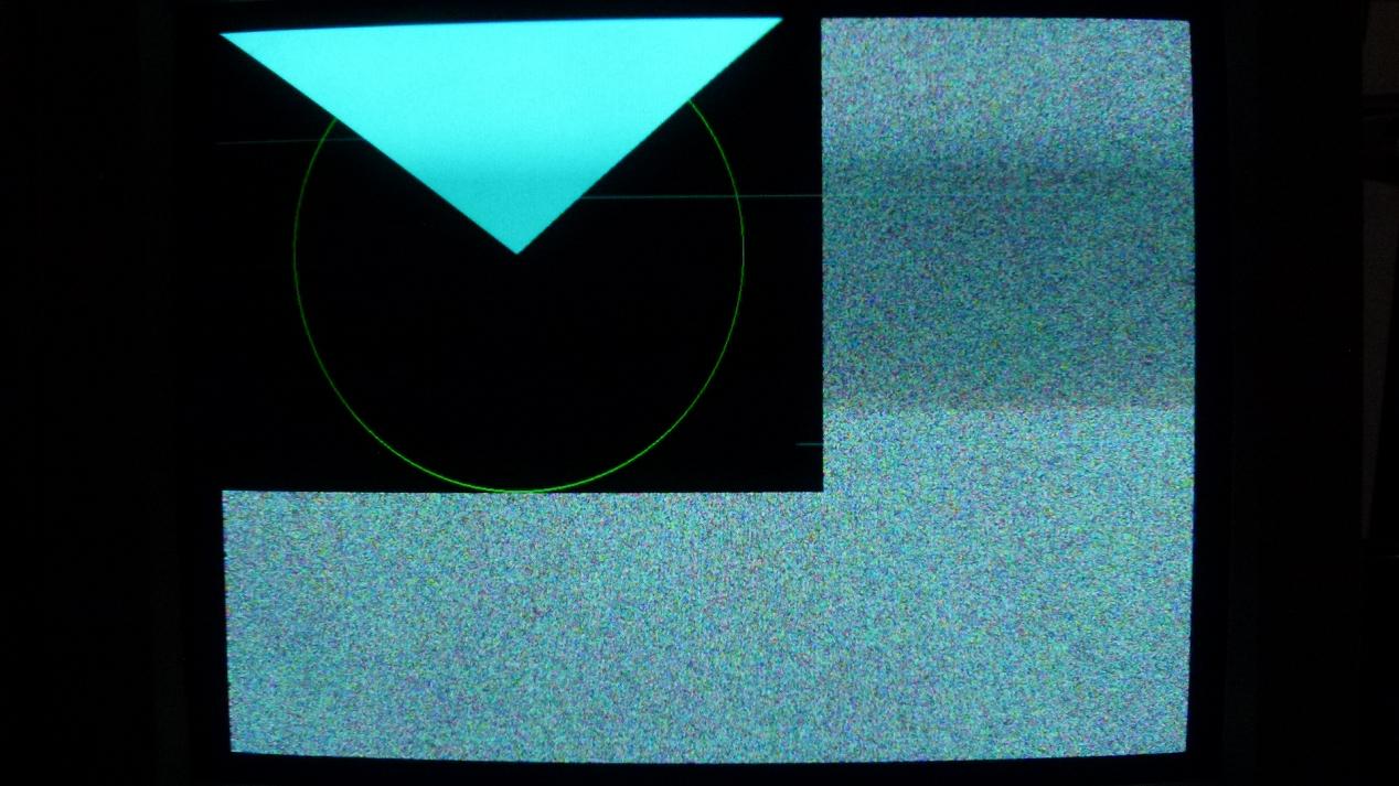 Added the Control Bit 0 for page flipping. Was easy, just 2 extra opcodes were used in the assembly. A CCB0 opcode to set page 0. Clear the screen, plot a circle and perform the line drawing 'radar sweep'. Finally a SCB0 to perform the page flip. I did not take heed of vsync though, to avoid the tearing effect that is sure to be expected, I will add vsync to Control Flag 1 and test for it before doing the page flip.