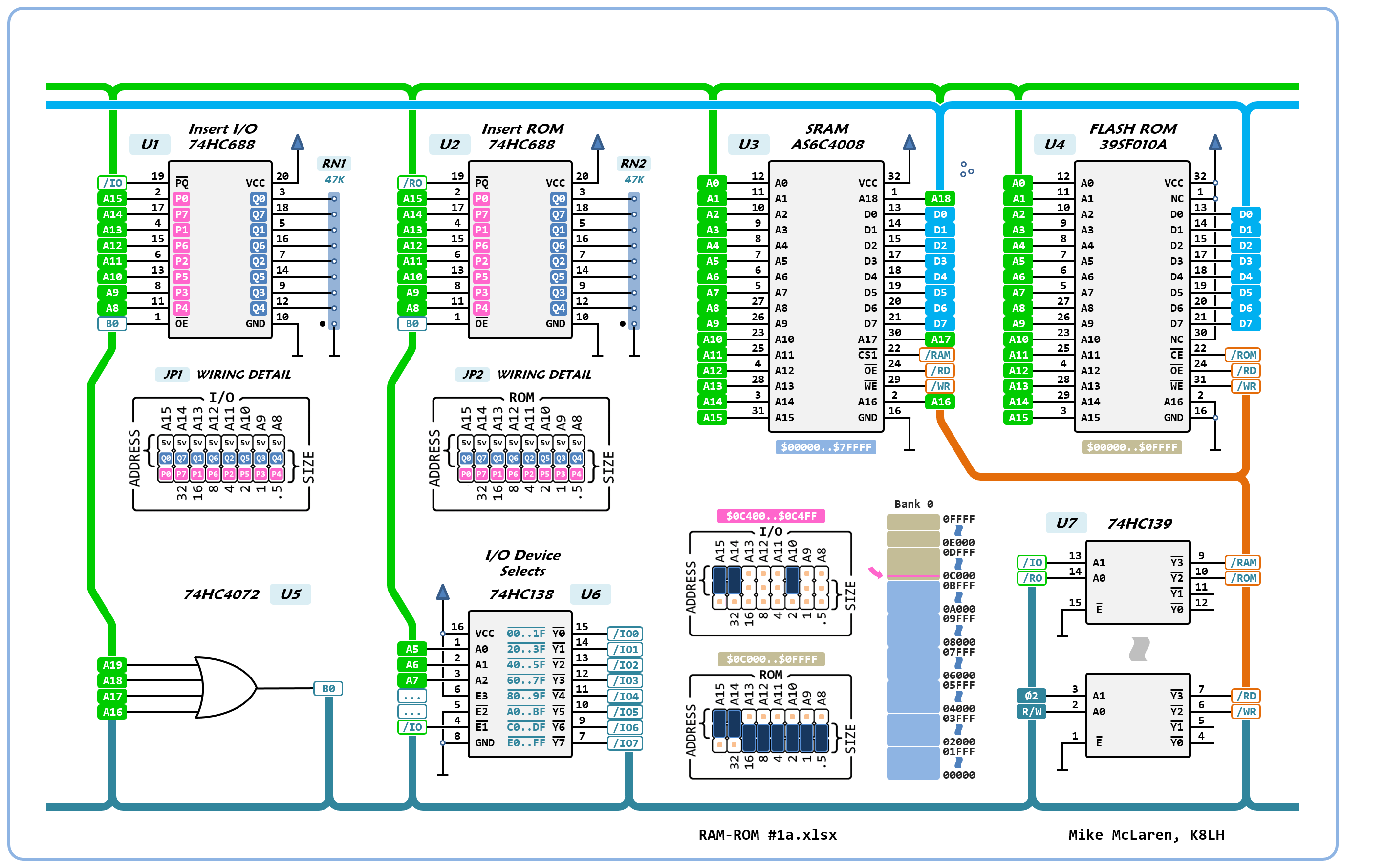 I wonder if a pair of 74HC688s could be used to "insert" ROM and I/O into the 64K Bank 0 address space for a simple 512K system? Would they limit the clock speed and what signals need to be qualified by VDA & VPA?