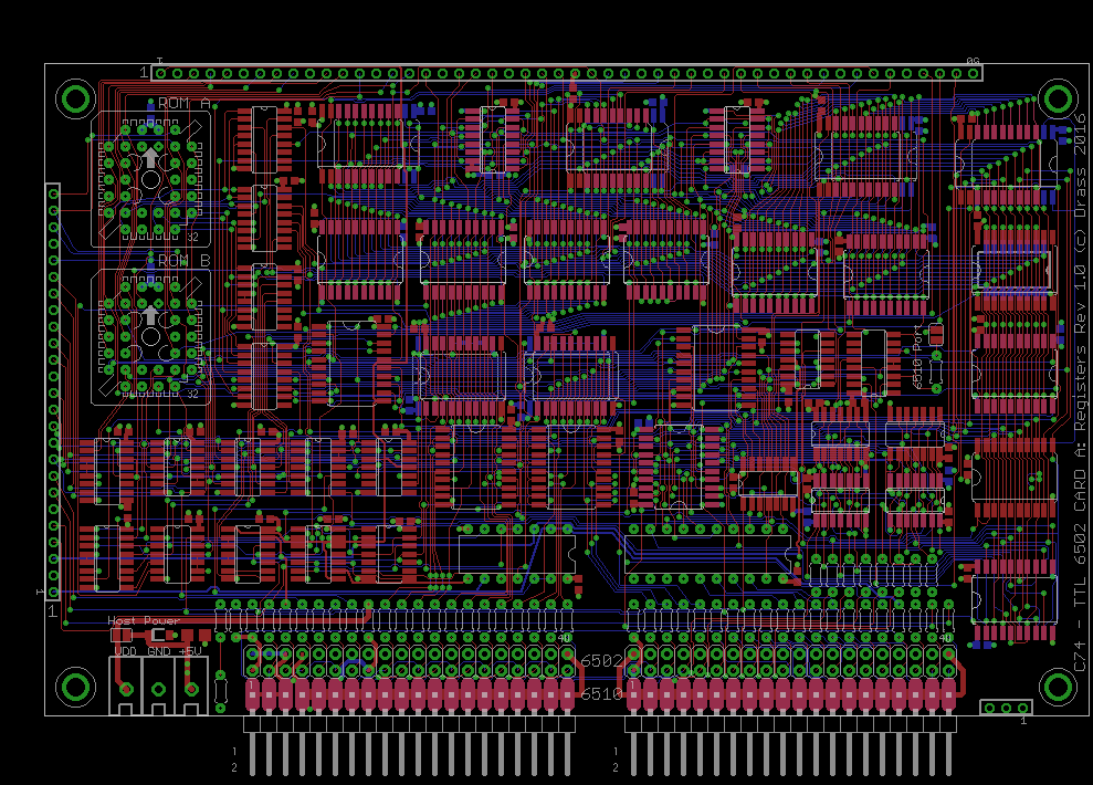 I decided to take a pause from routing and look at 65C02 compatibility. Realistically, this is the last opportunity to add any significant changes to the hardware before working on the ALU&CU card, so it's a good time to make final decisions. My primary target is the Commodore 64, which of course uses the NMOS chip. Nevertheless, it would be nice to have this CPU be able to live alongside newer designs which use the 65C02.