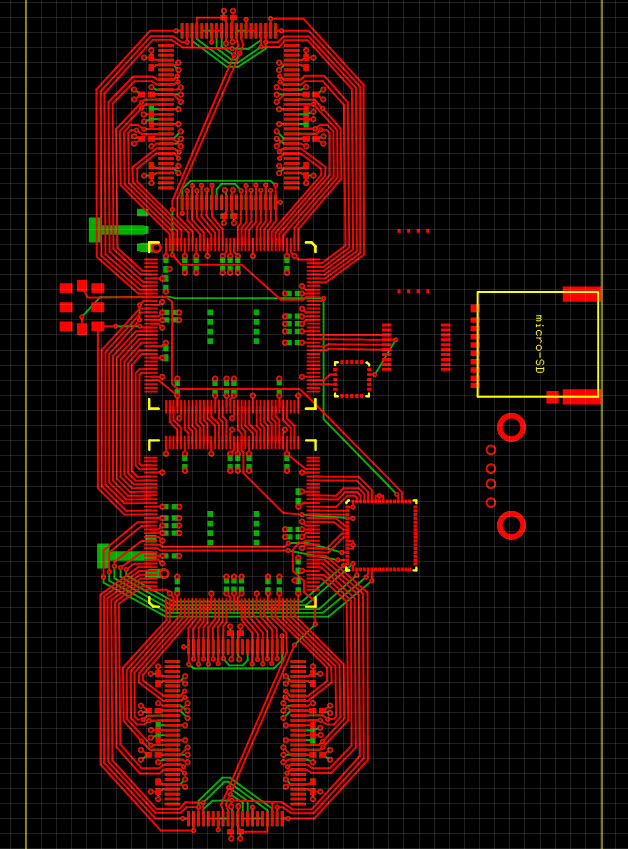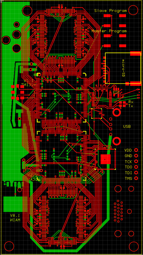 3) Finished the basic interconnects among the Major IC's, i.e. S6-S6 communication, 2x S6(s) to 4xRAM(s), I2C bus and SPI bus, 16-bit RGB to HDMI IC.