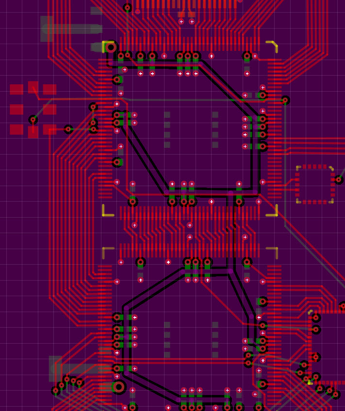 For the S6's and SyncRams, I'm using proven IC layouts from the PVB project, also the voltage regulators, etc. It does help most of the IC's are on top of the board. 2 of the most critical ones, the SyncRams are on the bottom. I have triple checked those, about to quadruple check...
