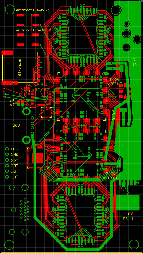I believe the 2 most important things left are the power on reset to the FPGAs and wiring the HDMI Transmitter, power plane, bypass caps and output connector.