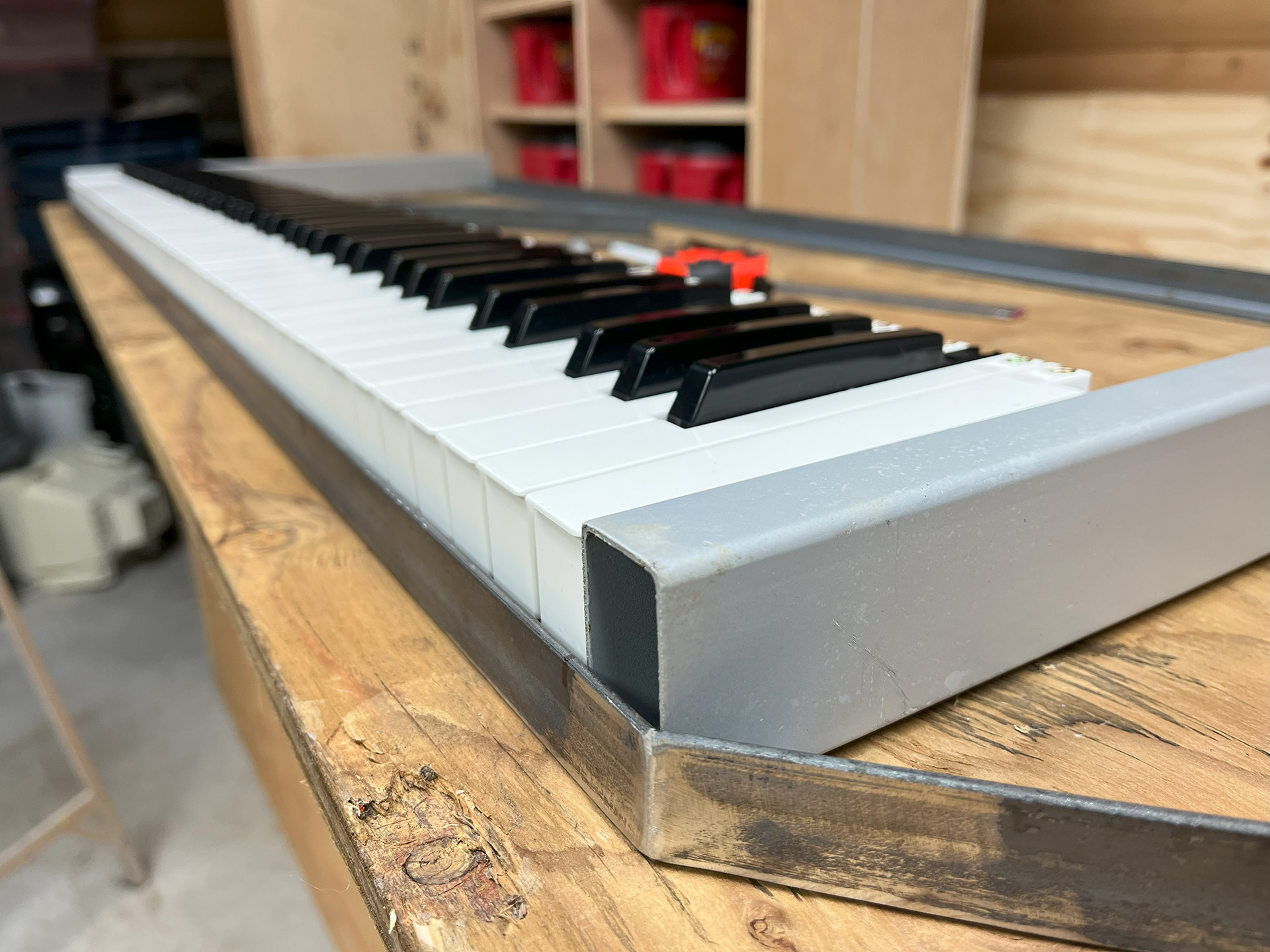 Originally I gutted a dead Roland 88 key piano for the hammer action and velocity sensitive board but after some time realized that I didn't like it for synth playing.
