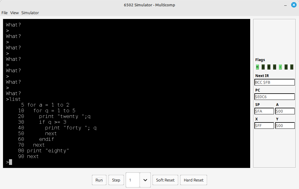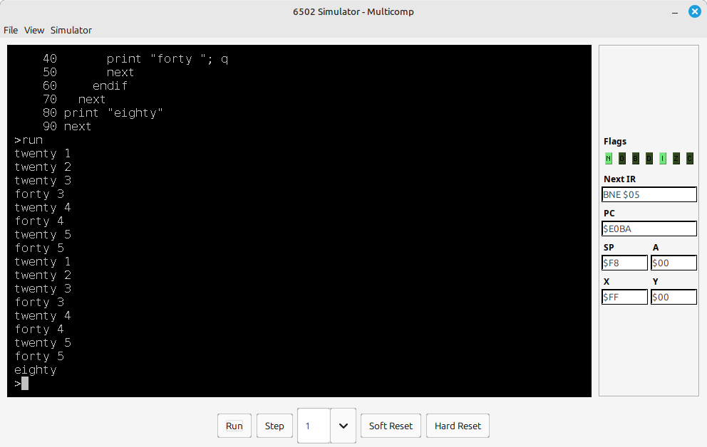 p.s. yup, it breaks it; it mostly works, but this code with two nexts from a single for: executes both the inner and outer loops the expected number of times, but it's clearly not matching the nexts correctly; line 80 is executed only once and its next is being treated as an end (reasonable: an endif, next, or return all do the same thing: nothing; they're considered markers rather than executable keywords). Neil